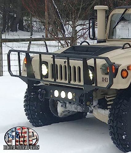ORIGINAL HUMVEE ( TM) HMMWV M998 M1038 New Brush Guard - Green. THE ITEM INCLUDES THE BRUSH GUARD AND 2 MOUNTING BRACKETS. MOUNTING HARDWARE IS SOLD SEPARATELY ON AMAZON AS WELL AS 2 BRUSH GUARD PINS AND CABLE LANYARDS AS THEY ARE NOT ALWAYS NEEDED.