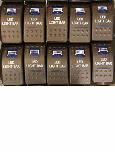 10 Pack Rocker Switch Led Light Bar Blue 12v 20a, 24v 10a Car Truck Interior Tog