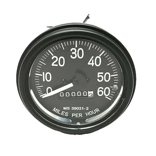 Military speedometer for use with all military wheeled vehicles including. PN #12338463 NSN 6680-01-195-2146. Military speedometers are mechanical, using a cable to transmit speed information from the vehicle's drivetrain to the speedometer in the dashboard. This is a more robust and reliable system compared to electronic speedometers, as it's less prone to damage and easier to repair in the field