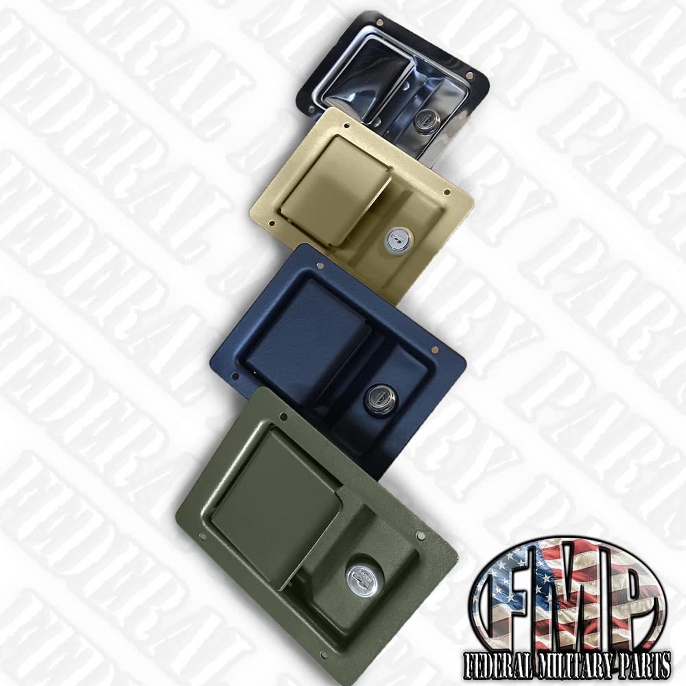 These locking door handles are made in USA and are compatible with all u.S. Military humvees. They will never rust. They have 2 keys and all door locks match if you buy more than one. These are "Single locking" door handles, meaning they only lock from the outside with a key. We also offer a dual locking set that is identical to this set, aside from the dual locks which allow locking on the inside as well as the outside.