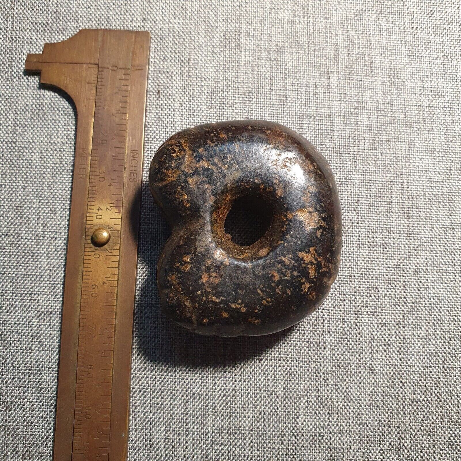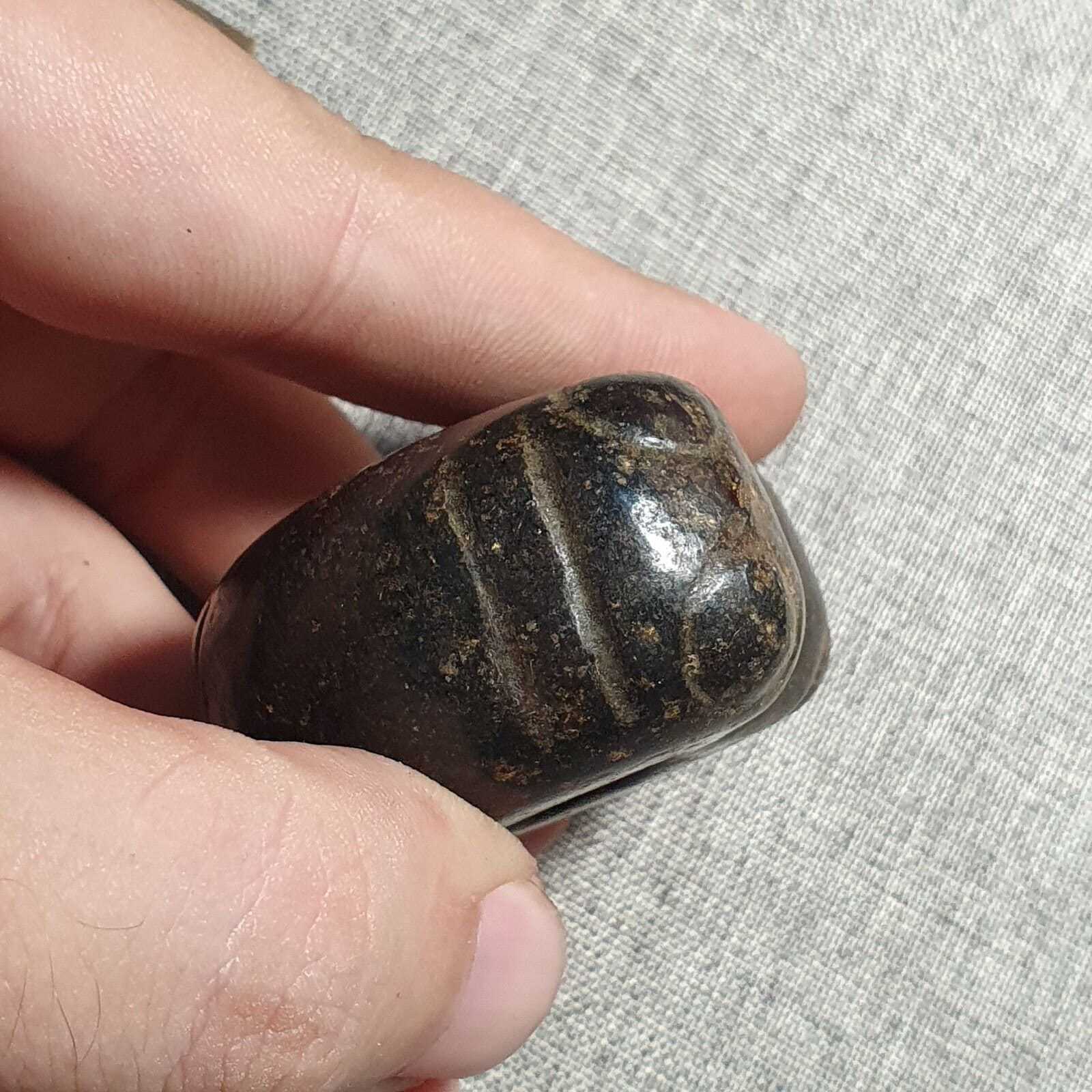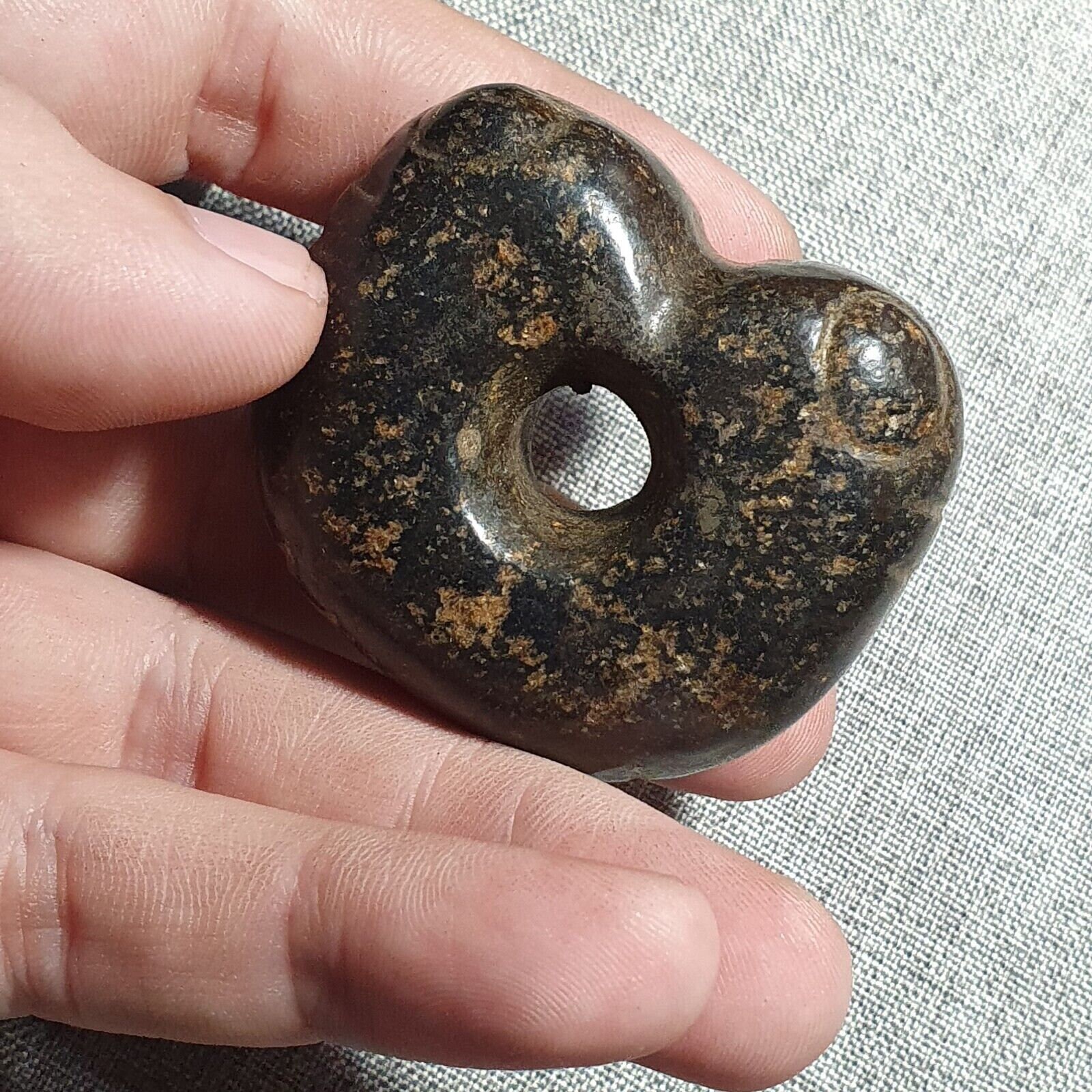 Ancienne perle pendentif amulette en pierre noire et pierre de jade sculptee a la main