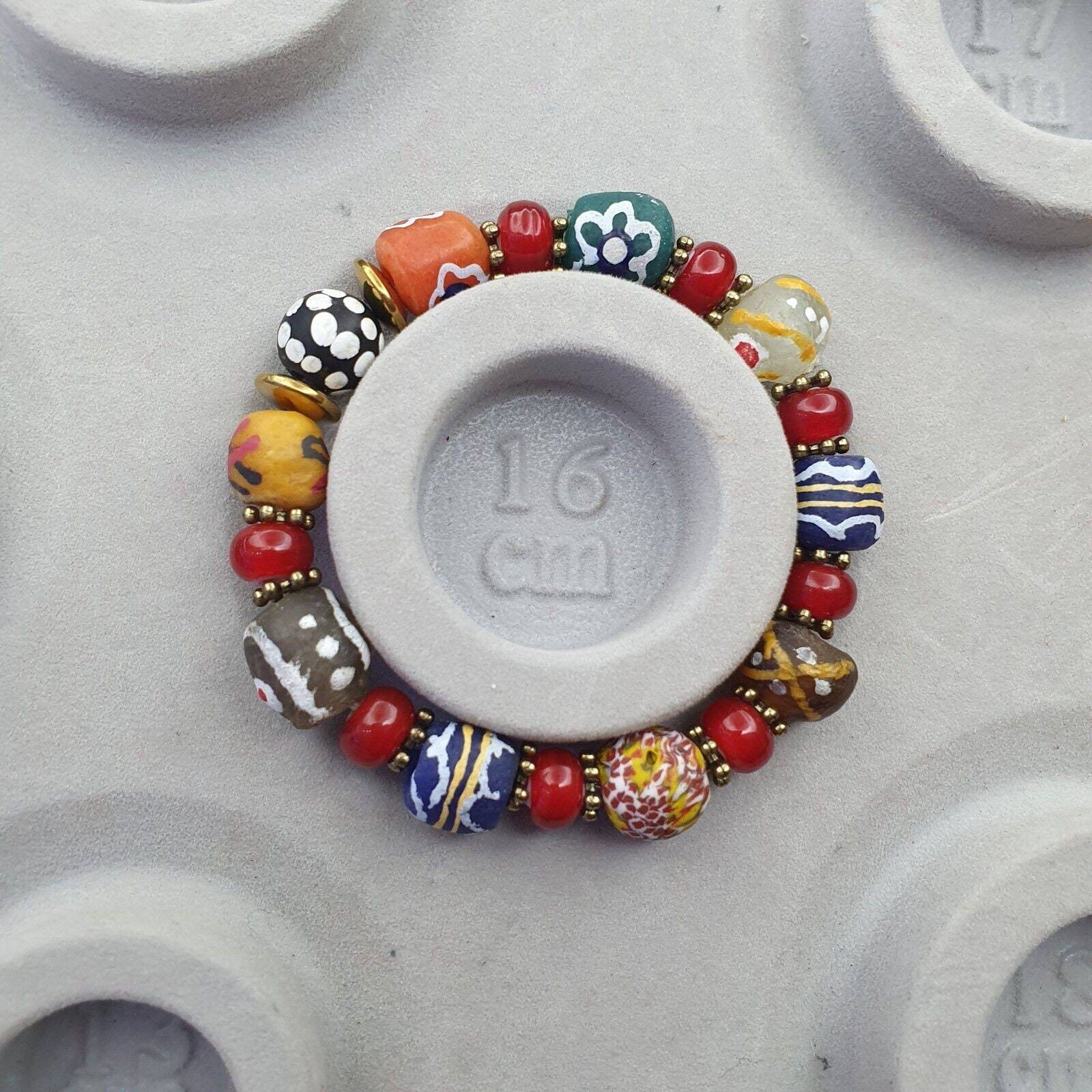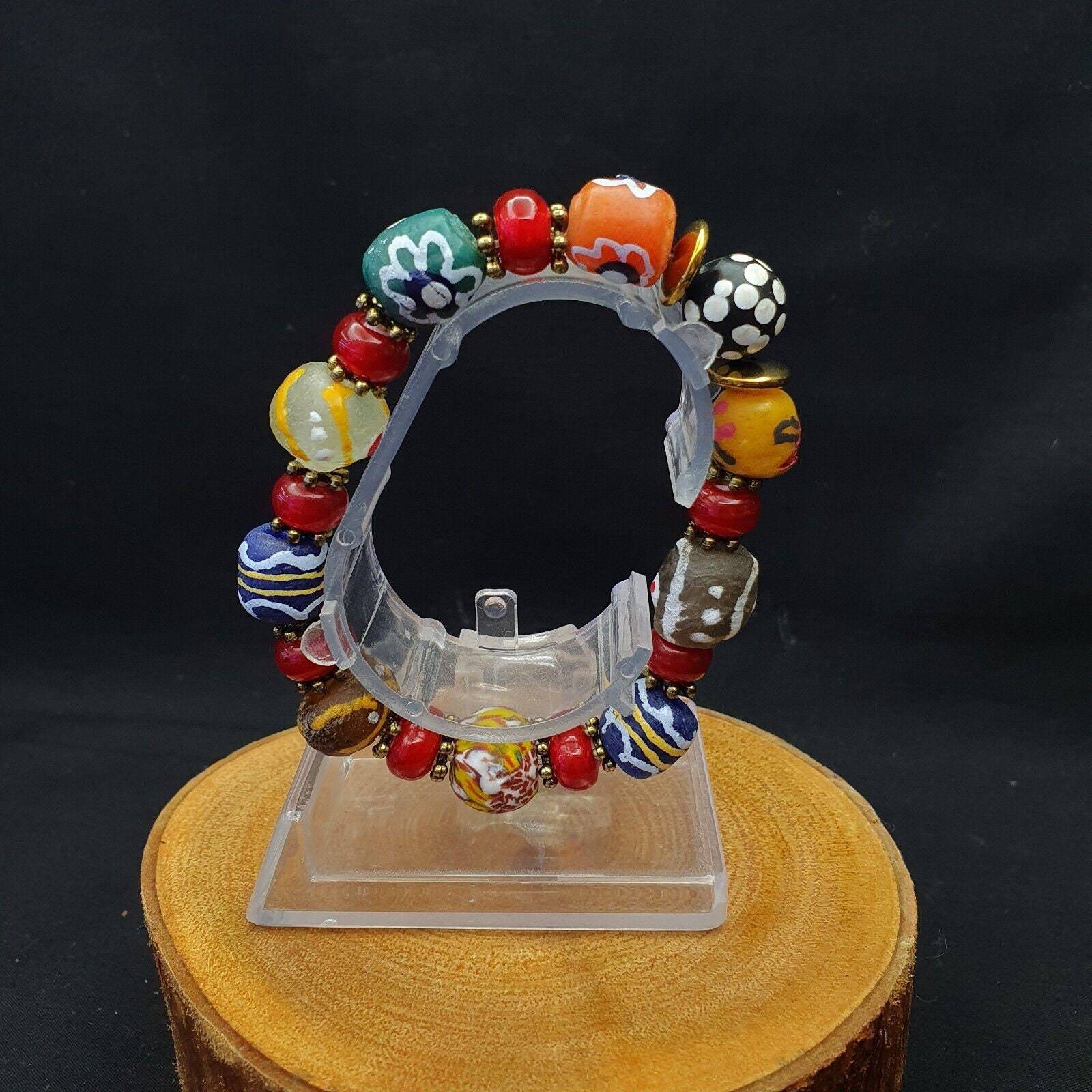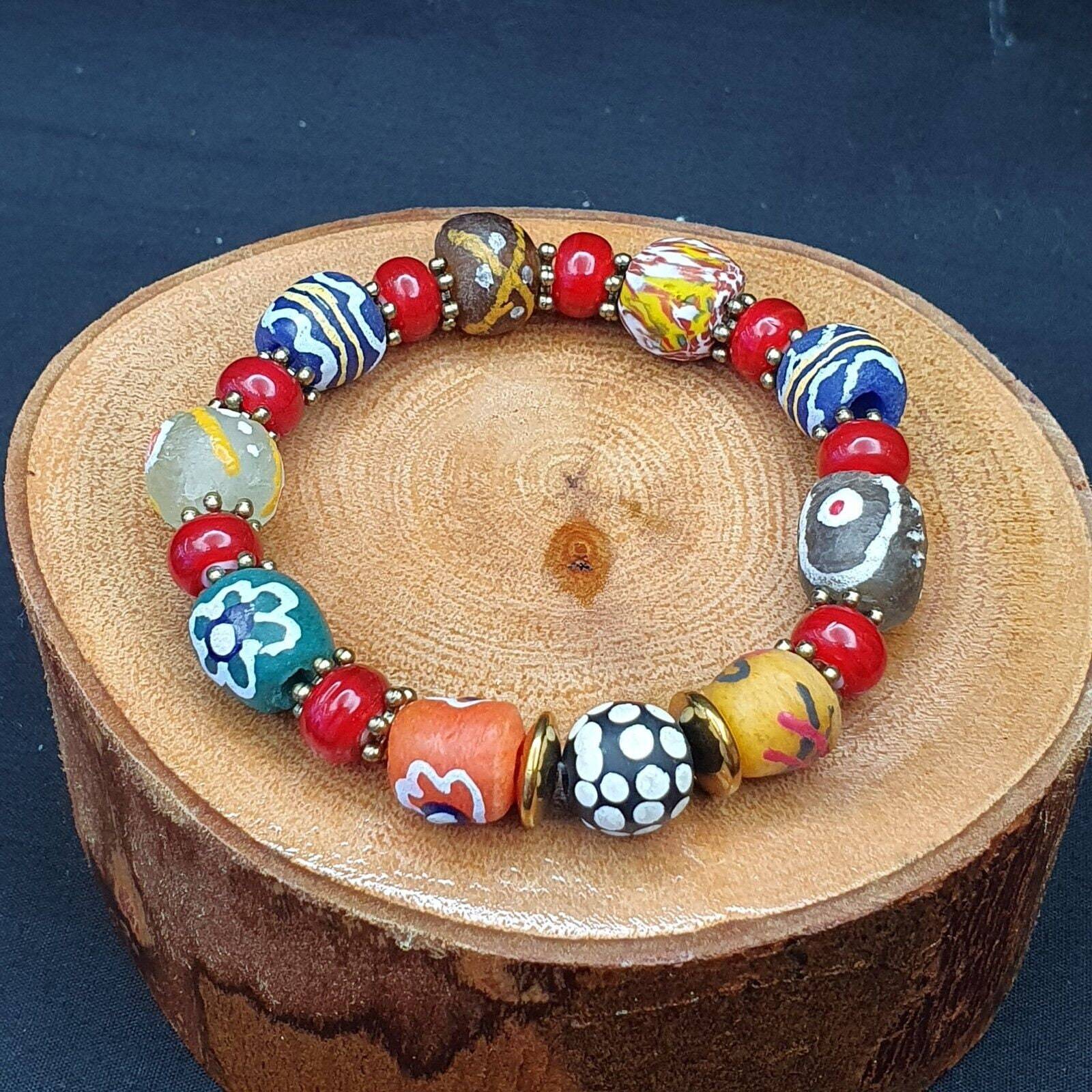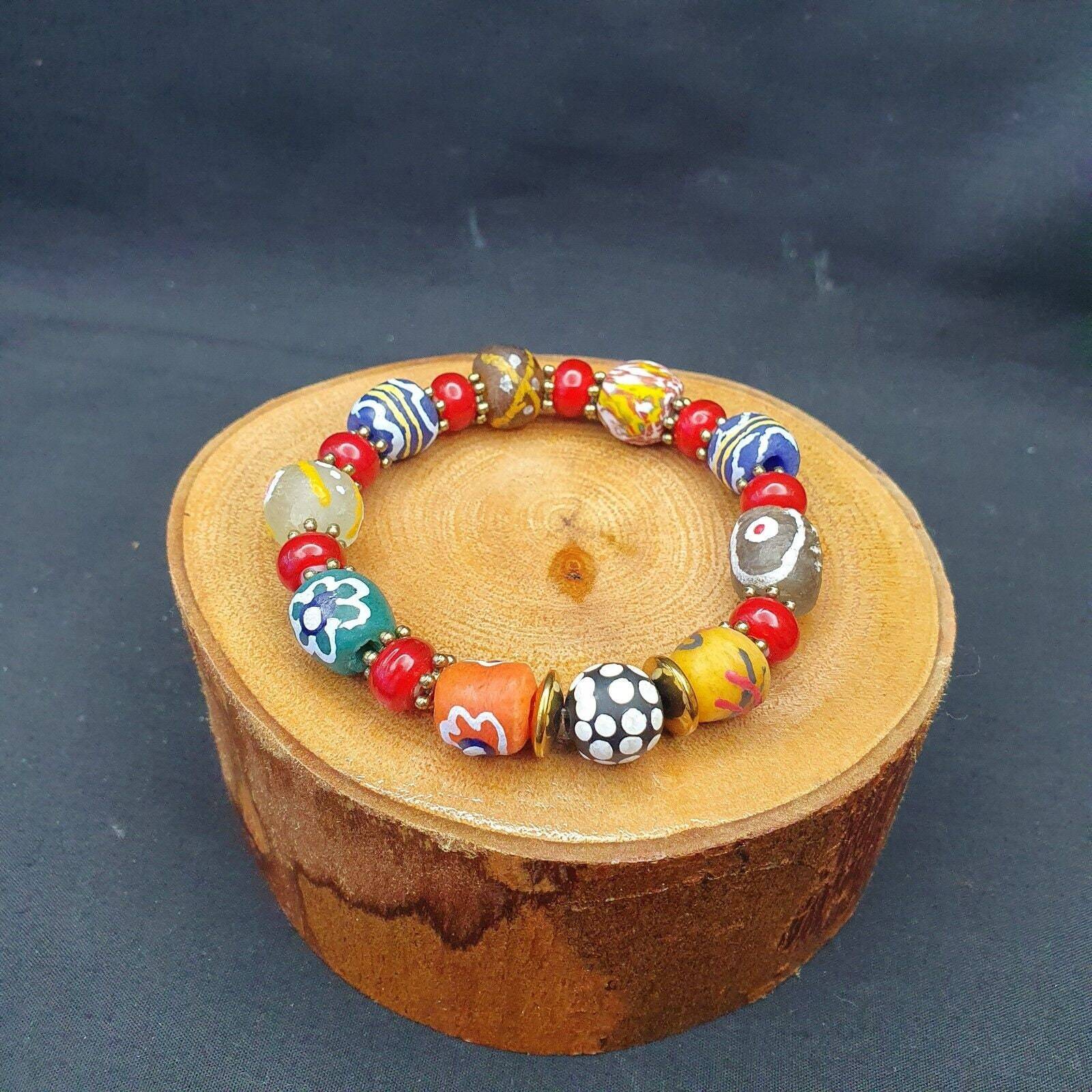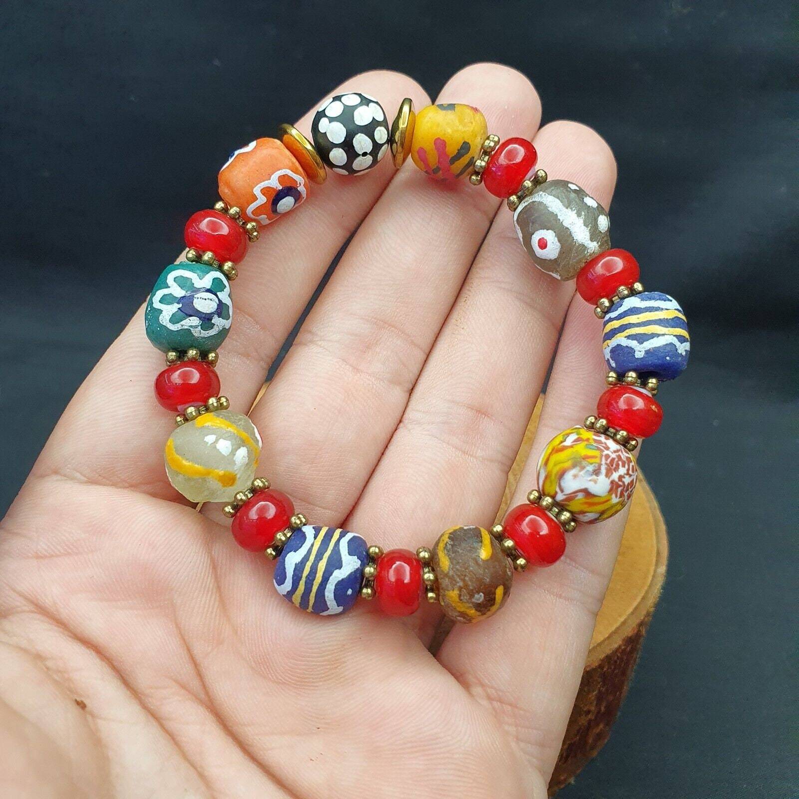 Vintage african hand painted glass beads with white heart beads braceletGift