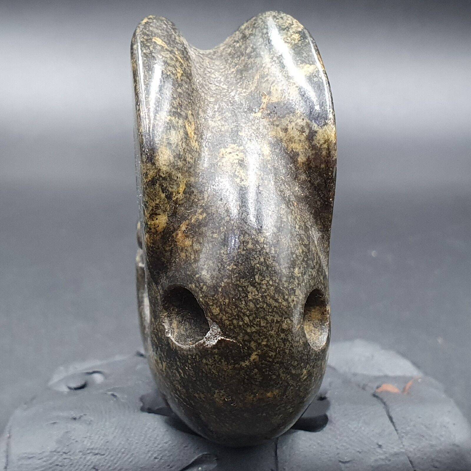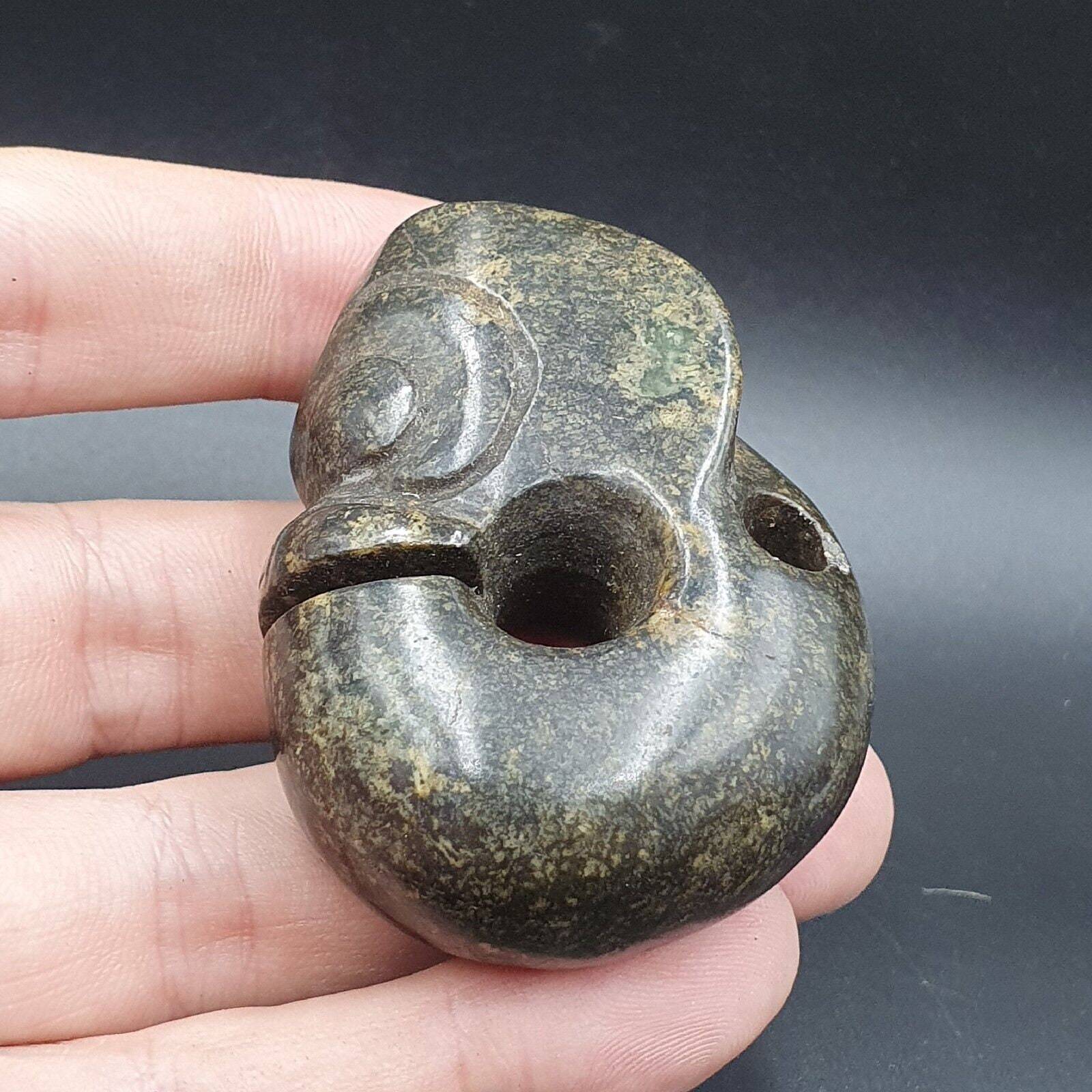 Ancienne perle pendentif amulette en pierre de jade sculptee a la main