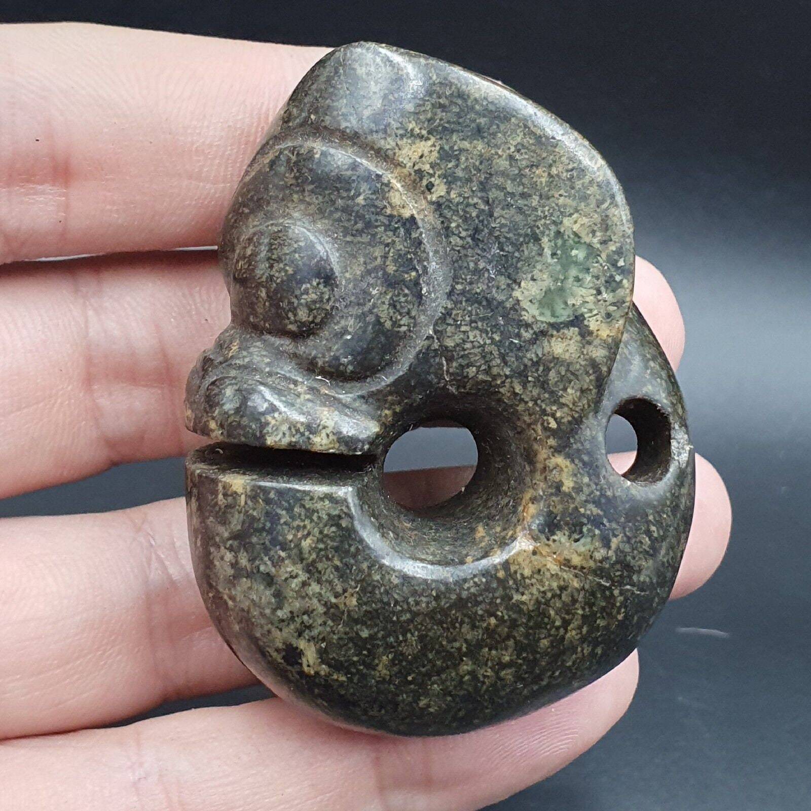 Ancienne amulette pendentif pierre sculptée animal mystique jade vert jade jd-21