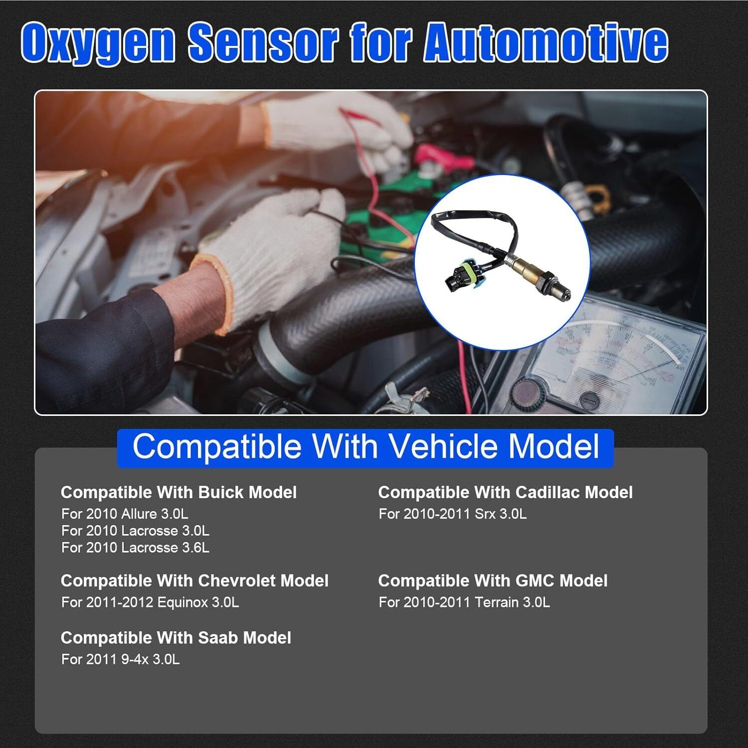Compatible Vehicles: Oxygen sensor fit for Chevrolet Equinox V6 3.6L 2013-2017, for Equinox V6 3.0L 2010-2012, for Impala V6 3.6L 2012-2013, for Traverse V6 3.6L 2009-2011, for Captiva Sport V6 3.0L 2012, for Impala Limited V6 3.6L 2014-2016; for Cadillac SRX V6 3.0L 2010-2011, for SRX V6 3.6L 2012-2016 Compatible Vehicles: Oxygen sensor fit for Buick Enclave V6 3.6L 2009-2011, for Allure V6 3.0L/3.6L 2010, for LaCrosse V6 3.0L 2010, for LaCrosse V6 3.6L 2010-2016; for GMC Acadia V6 3.6L 2009-2011, for Terrain V6 3.6L 2013-2017, for Terrain V6 3.0L 2010-2012; for Saturn Outlook V6 3.6L 2009-2010 OEM Numbers: 250-24649, 234-4815 upstream and downstream, replacement numbers: 12584050, 12607333, 12612430, 12634061, 25024649, 2344815 Excellent Performance: Products made of high-quality materials are not only durable, but also resistant to high temperatures and corrosion. The double laser-welded stainless steel body design effectively reduces the frequency of replacement and extends the overall service life of the product Main Functions: Helps ensure that your engine is continuously monitored and operates efficiently, can accurately detect the air-fuel mixture ratio, improve fuel economy, reduce harmful emissions, and prevent premature failure of the catalytic converter Attentions: Please be sure to repeatedly confirm the compatibility of your vehicle model with this product, especially the connector part. Please carefully check whether the original vehicle connector matches this product. Plug and play design, can be directly replaced, easy to install