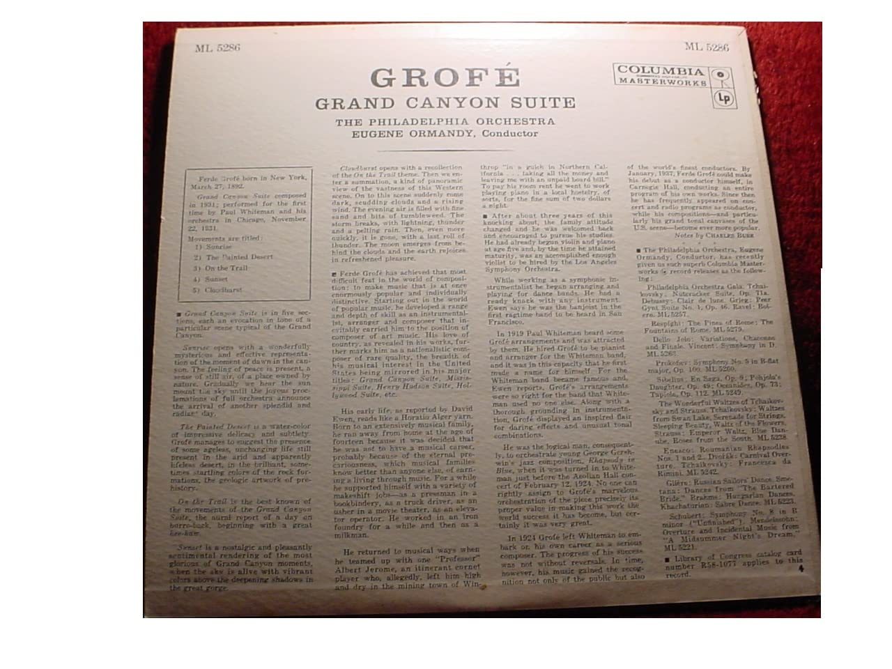 Groffe: Grand Canyon Suite The Philadelphia Orchestra LP NM/NM [Vinyl] Grofe, Eu