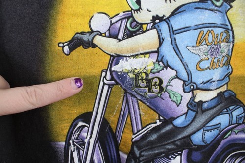 Vtg Y2K 2003 Betty Boop Mens Large Distressed Spell Out Motorcycle T-Shirt Black