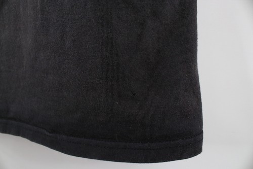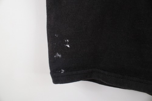 Blemishes front. and back bottom. Holes front bottom. Color fade. Distressed graphics