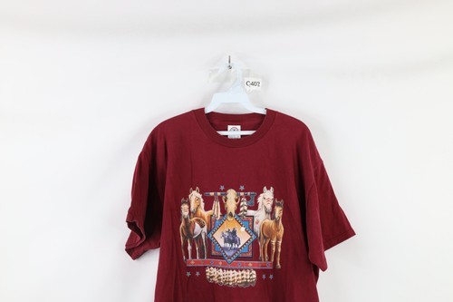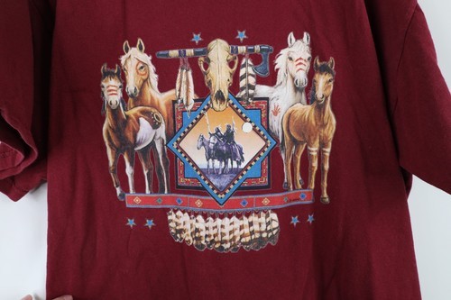 Vintage 90s Streetwear Mens Large Faded Southwestern Horse Indian T-Shirt Red