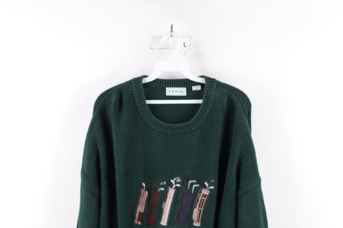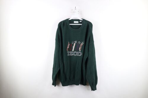 Vintage 90s IZOD Golf Mens XL Faded Spell Out Heavyweight Knit Crewneck Sweater