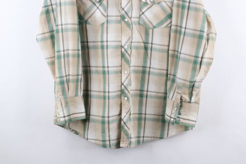 Vintage 90s Wrangler Western Mens Size Large Distressed Snap Button Shirt Plaid