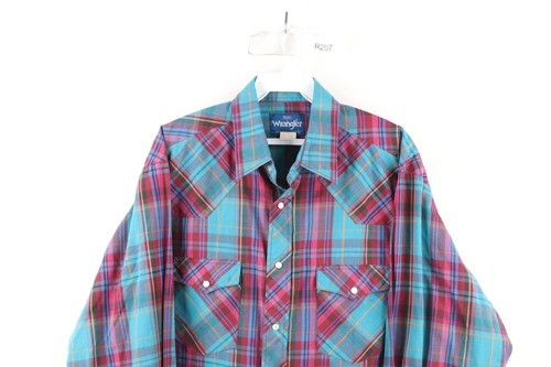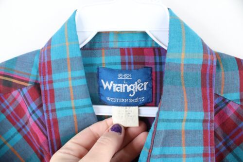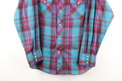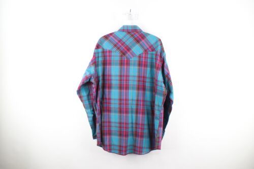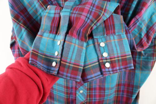 Vintage 90s Wrangler Western Mens Size Large Snap Button Collared Shirt Plaid