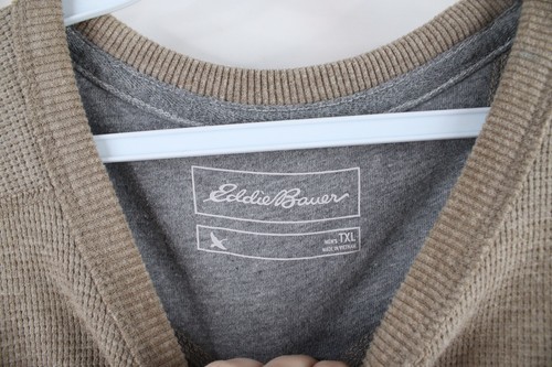 Vintage Eddie Bauer Mens XLT Faded Blank Heavyweight Thermal Waffle Knit T-Shirt