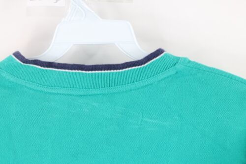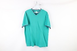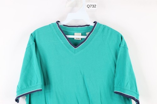 Vintage Gap Mens Medium Faded Striped Cotton Pique Knit V-Neck T-Shirt Teal