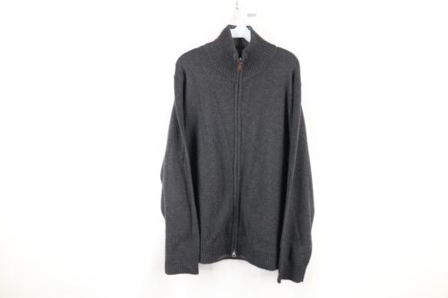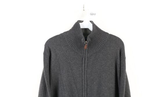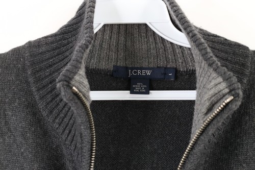 Vintage J Crew Mens Large Blank Merino Wool Knit Full Zip Cardigan Sweater Gray
