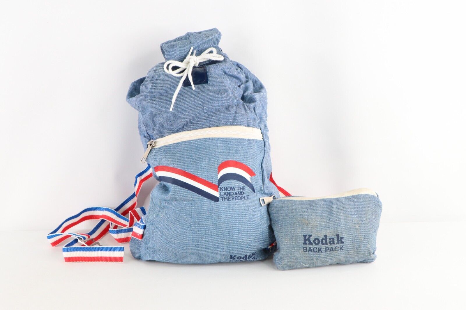 Vintage 70s Kodak Spell Out Chambray Denim Mini Top Loader Packable Backpack Bag