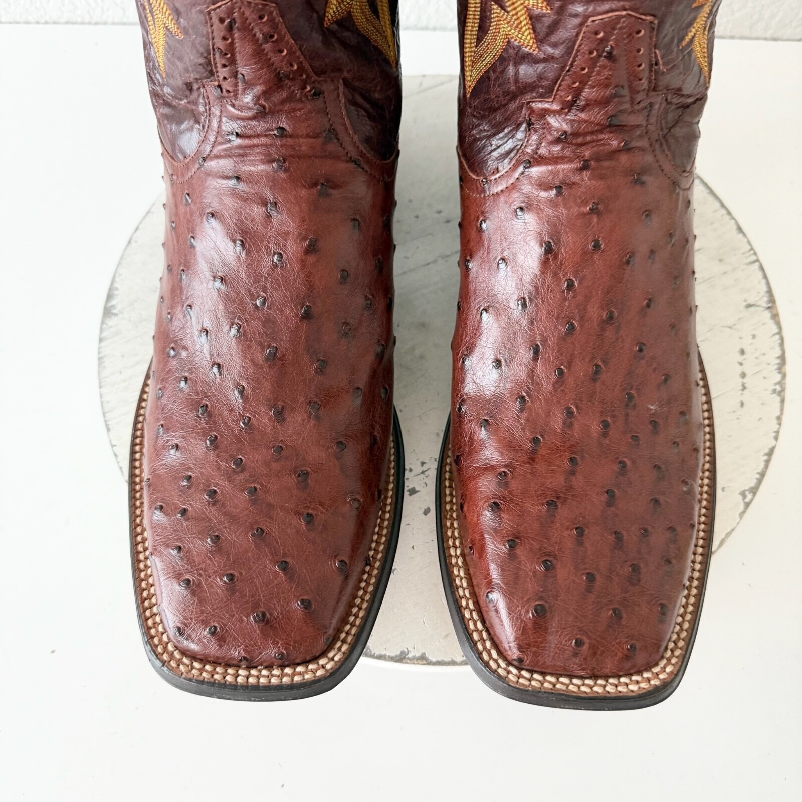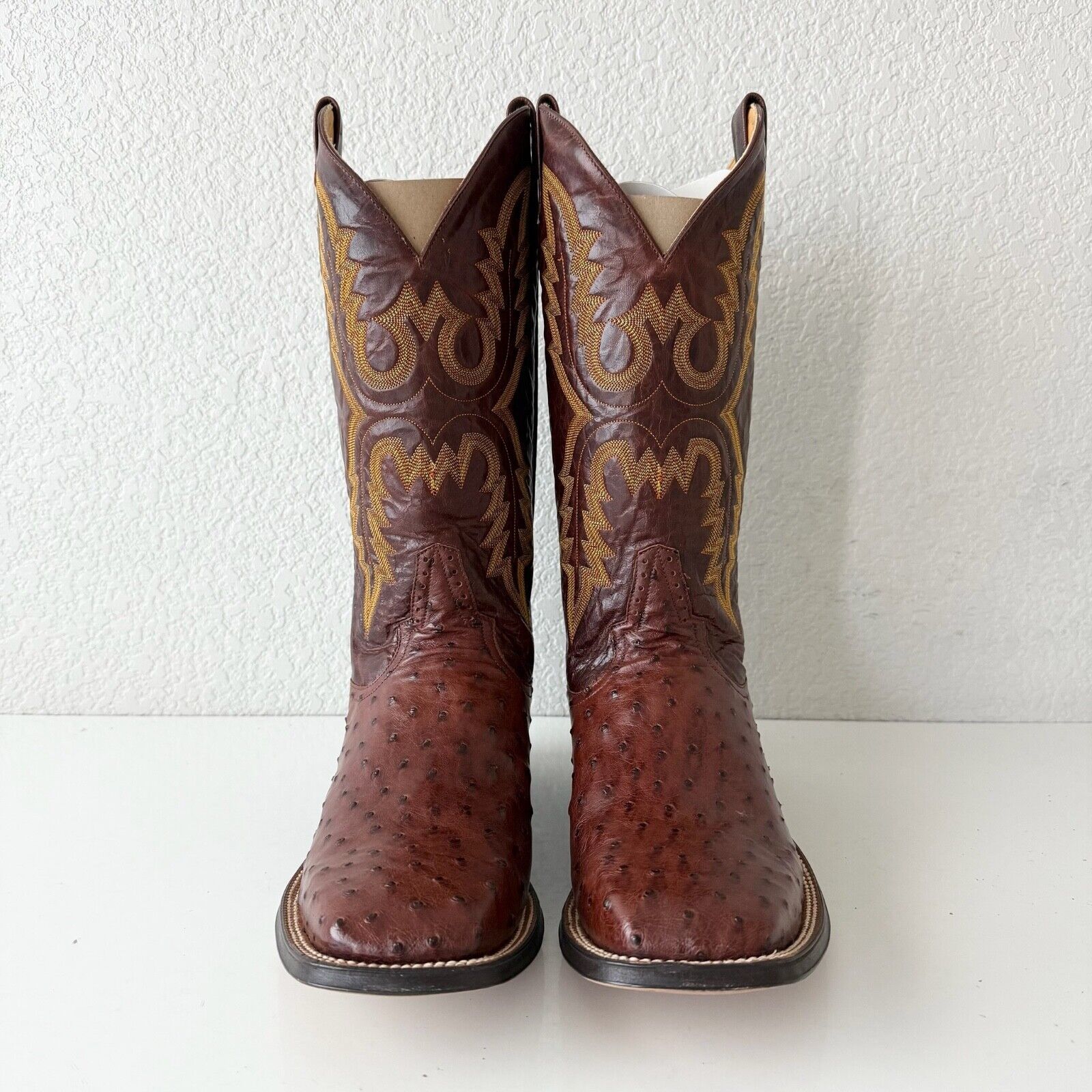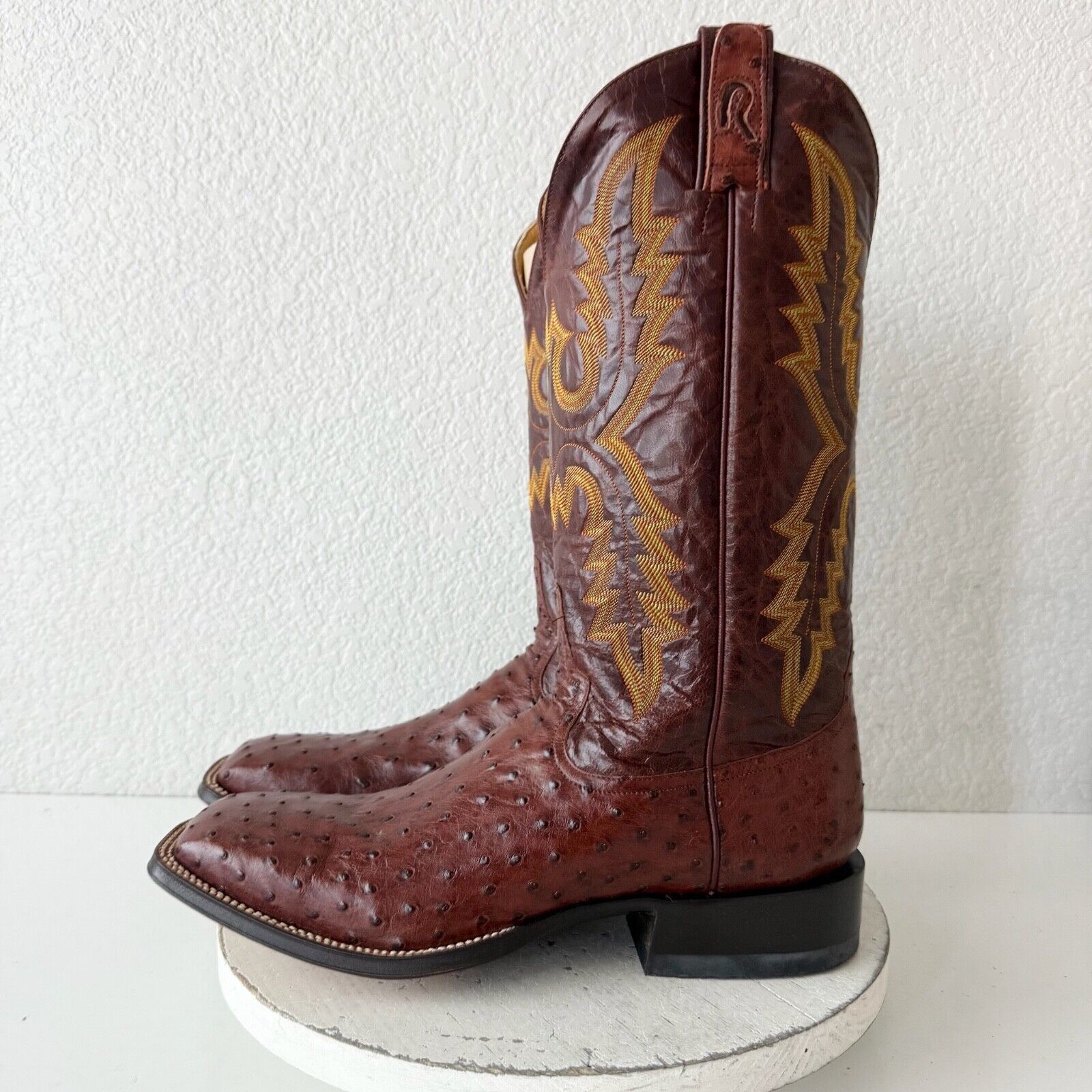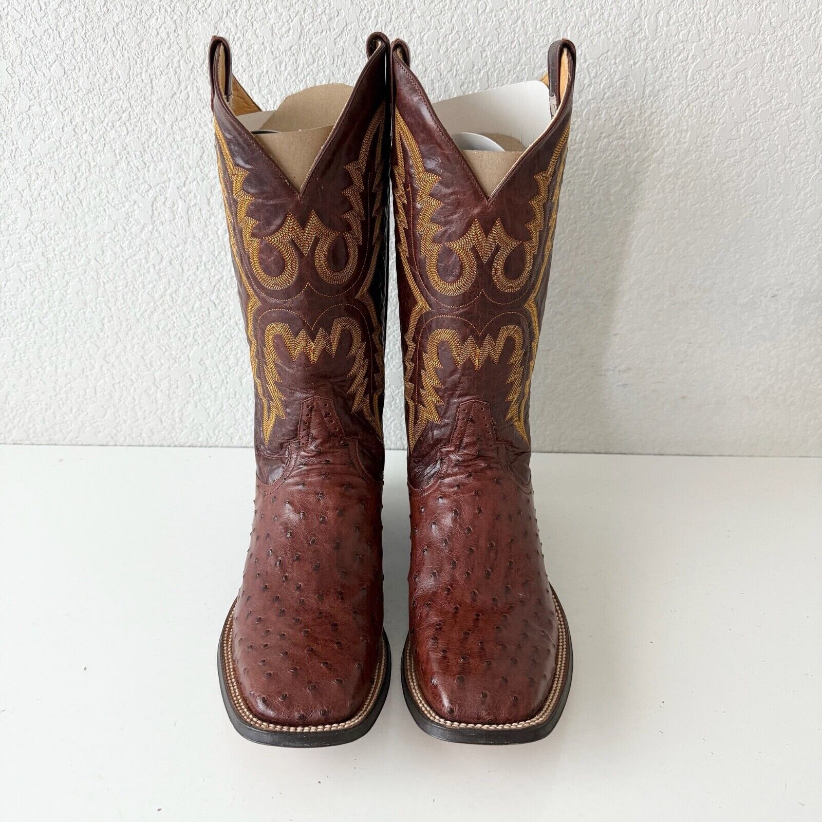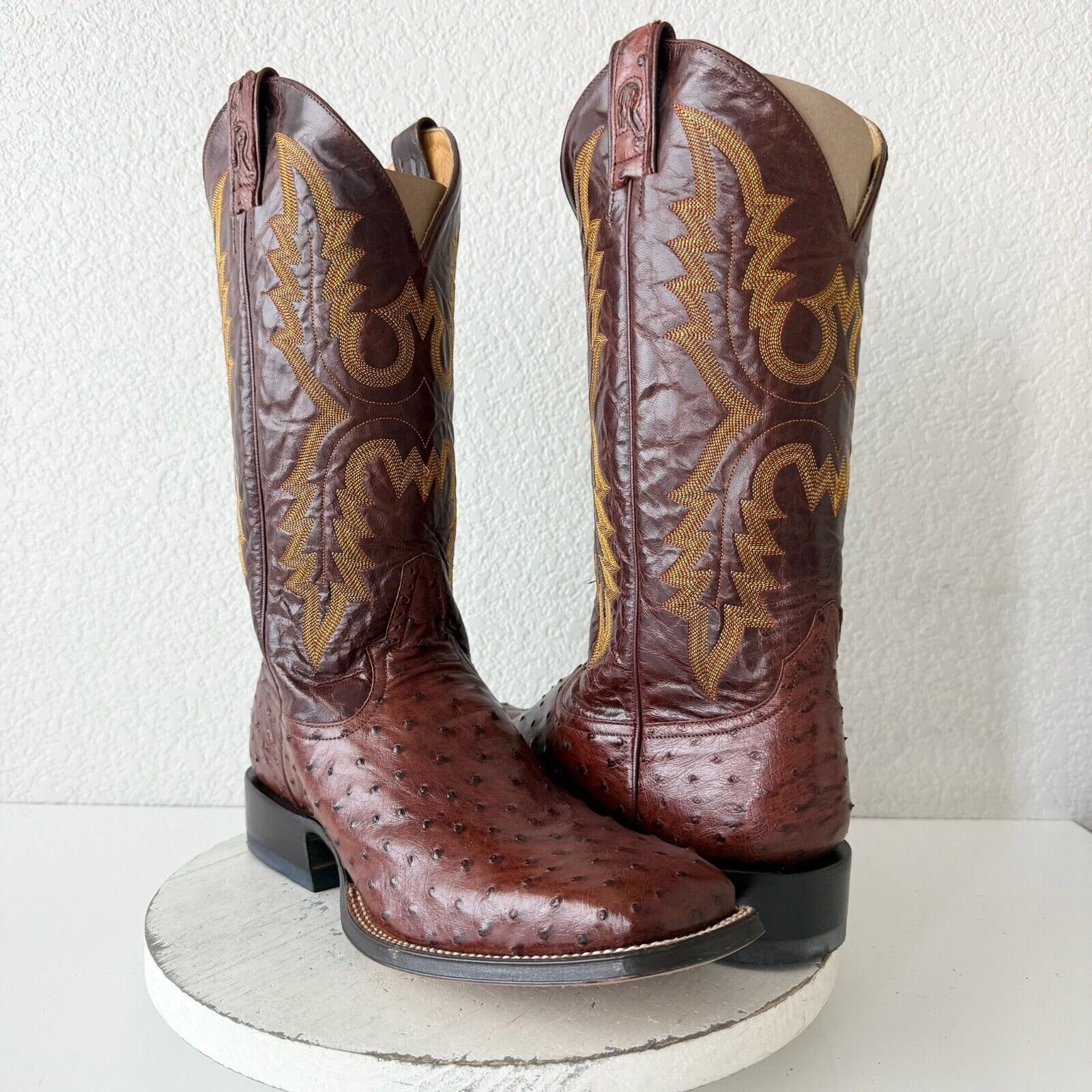 NEW Rod Patrick Mens Cowboy Boots Size 12.5D Brown Full Quill Ostrich Square Toe