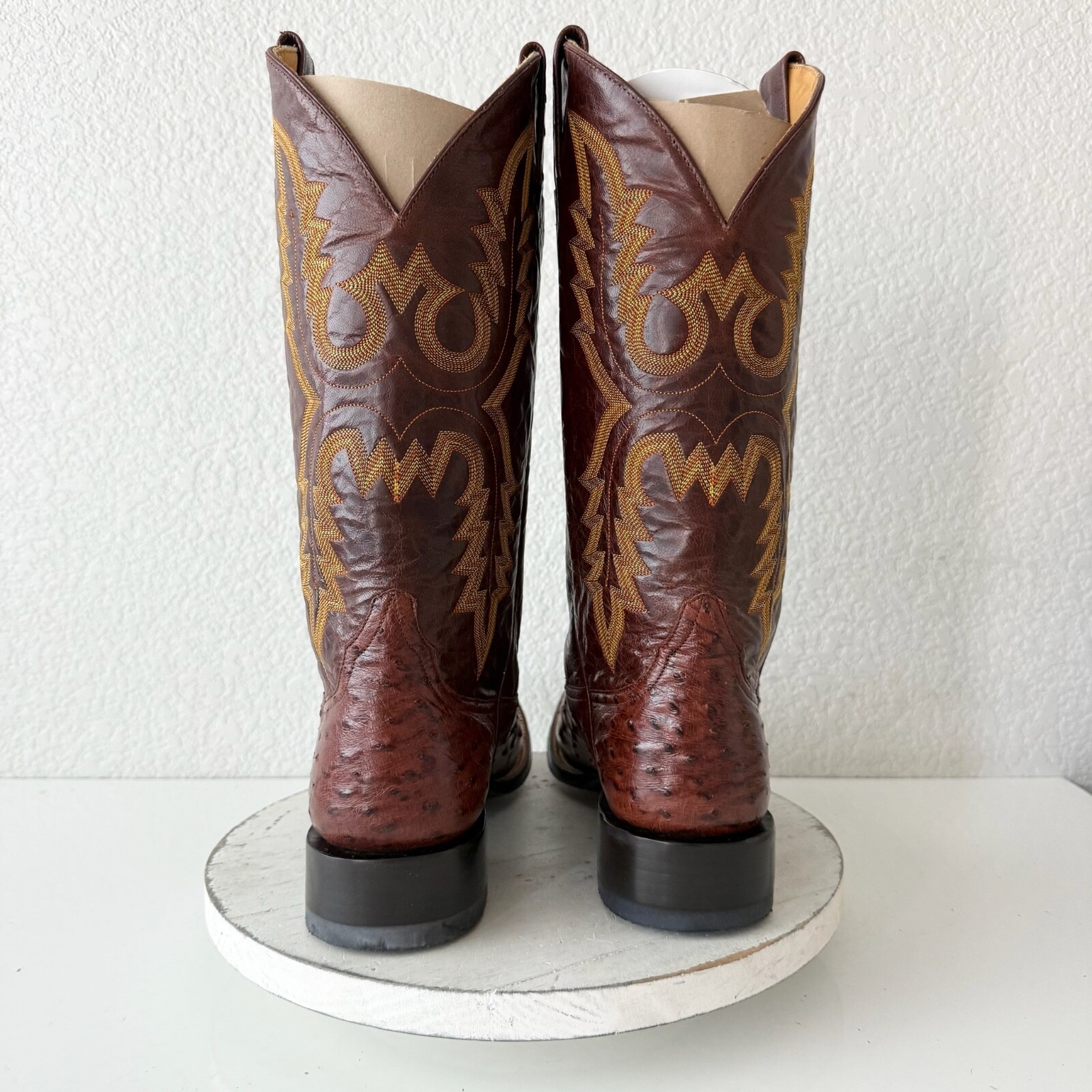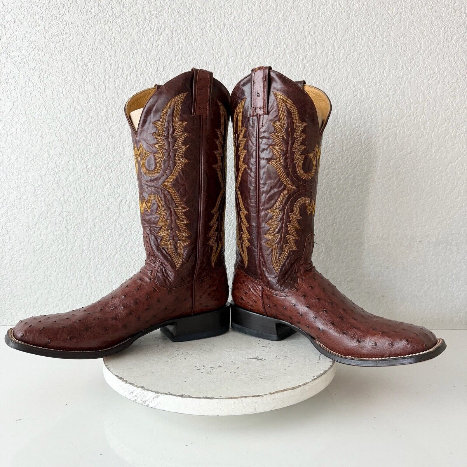 Rod Patrick Custom Bootmakers - Mens Cowboy Boots in Almond Brown Full Qull Ostrich Leather with a Square Toe