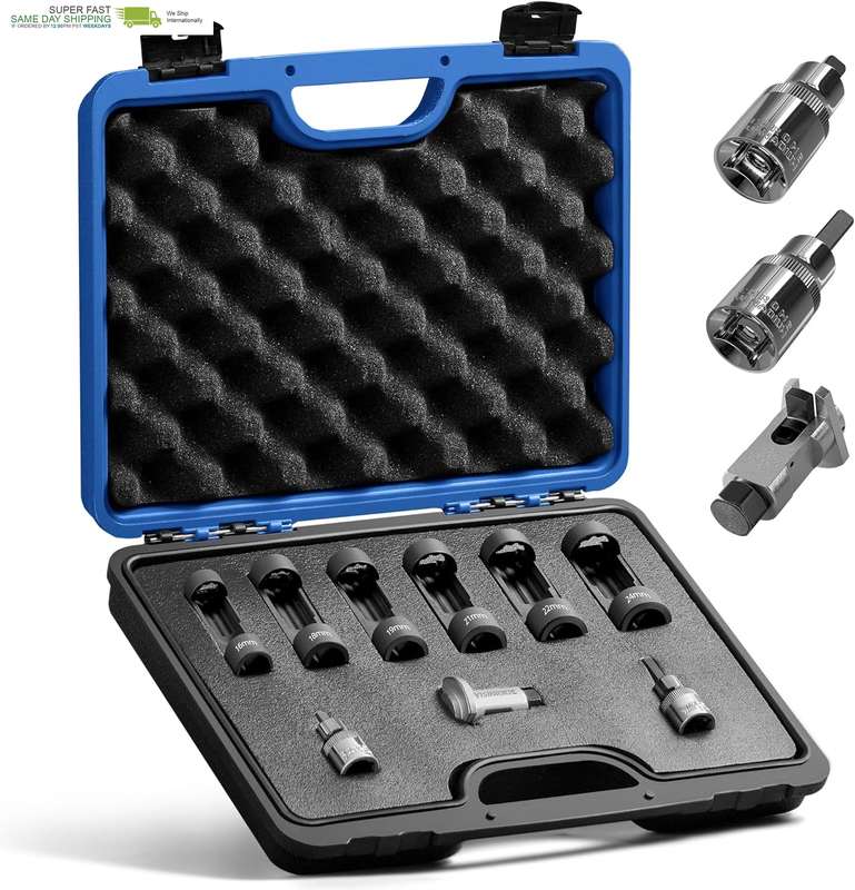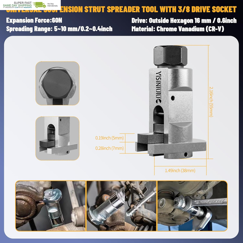 Quality: The tool box is packaged in high-strength industrial-grade plastic, and the interior is made of high-grade soft bag, which can better protect the tools. The tools are made of high-strength metal, and the surface is phosphating to withstand high-strength pressure. The foam groove in the box can prevent impact and moisture, protect the strut nut sleeve and strut expander tool from wear and rust, and allow the shock absorber sleeve to be neatly sorted after use. You don't have to worry about these strut nut removal tools being lost or messed up. Each tool has been tested for multiple real car repairs. The size accuracy is higher and it is very suitable for your vehicle.
