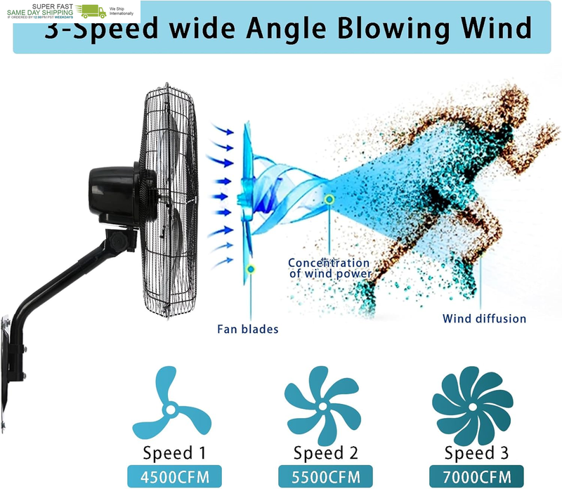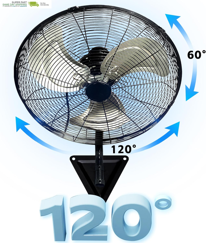 20” Wall Mount Fan 7000 CFM High Velocity Wall Industrial Fan 120° Oscillating F