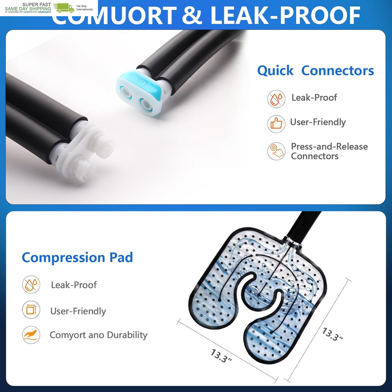 COMFORTABLE AND LEAK-PROOF: Experience ultimate comfort and leak-proof protection with our premium ICYTHRP compression cold therapy pads. Designed for knees, shoulders, ankles, feet, hips and legs, ICYTHRP cold therapy pads, tubing and connectors are made of durable composite materials and are One-piece leak-proof design for targeted pain relief. For use on the shoulder, please have someone else help put it on.