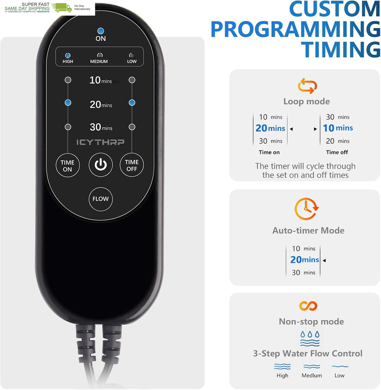 CUSTOMIZABLE CRYOTHERAPY: ICYTHRP knee ice therapy machine is equipped with a programmable timer. Our cold therapy machine will cycle on and off according to the time you set, day or night. Convenient and effective cold therapy is perfect for post-surgical pain management and relief, and there's no longer any need to worry about the safety of falling asleep with your cold therapy machine on.