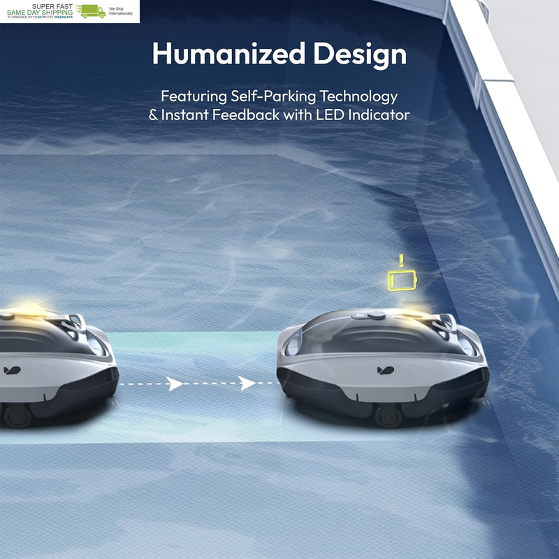 Smart Sensing, Auto-Parking LED Indicator: Take pool cleaning to the next level with intelligent sensing technology. The Bubot 300P navigates with agility, quickly adjusting direction upon wall contact, and parks automatically near the pool edge when the battery is low. Stay informed with a four-color LED indicator that provides clear status updates at a glance.