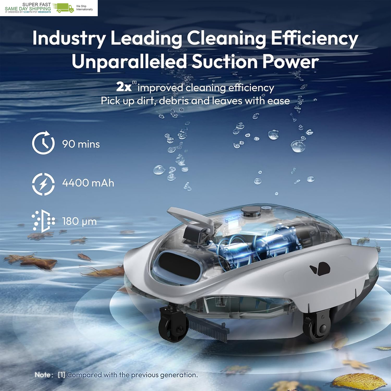 Enhanced Suction Power with Bluehole Tech: Redefine pool cleaning with our cutting-edge Bluehole technology! Delivering 2X the overall performance, 4X better leaf removal, and 7.5X improved efficiency for debris between 3mm and 8mm, the Bubot 300P ensures swift and thorough cleaning. Its powerful motor and sleek design guarantee no debris is left behind?experience power and precision like never before