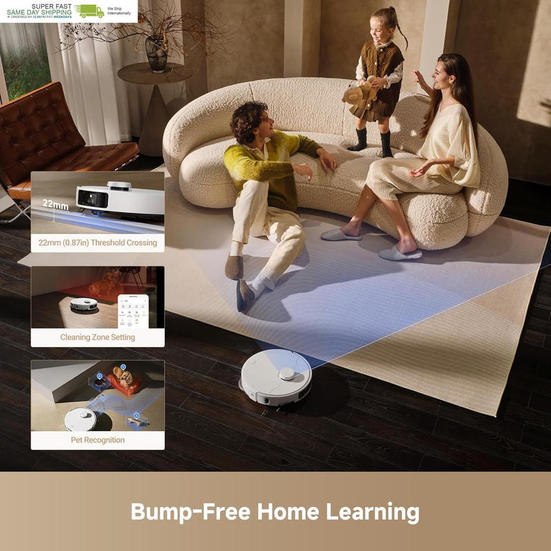 Smart Detection, Deeper Cleaning: An RGB camera and intelligent dirt detection system precisely identify small and big debris like coffee spills, beans, bread crumbs, and more so that the robot vacuum can scrub them off from floors.