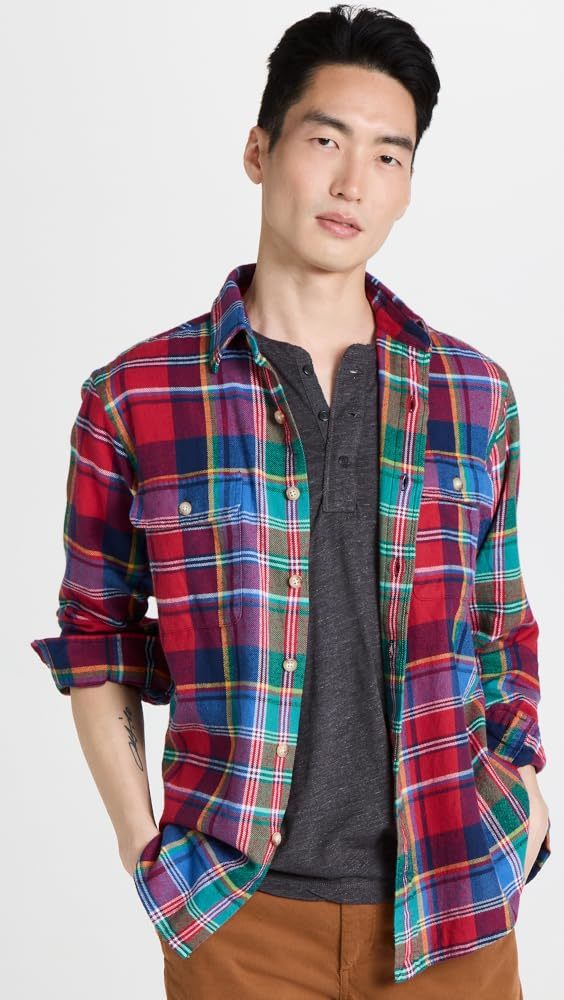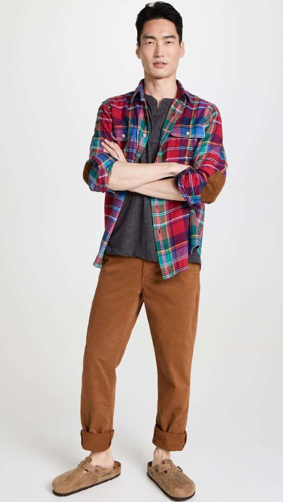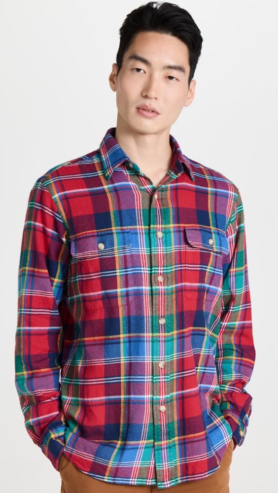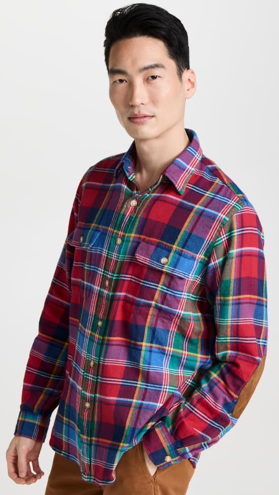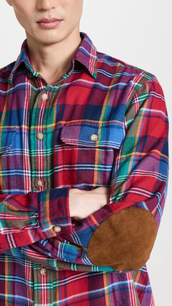 Polo Ralph Lauren Men's Reg-Fit Bedford Suede-Patch Twill Workshirt Multi-XL