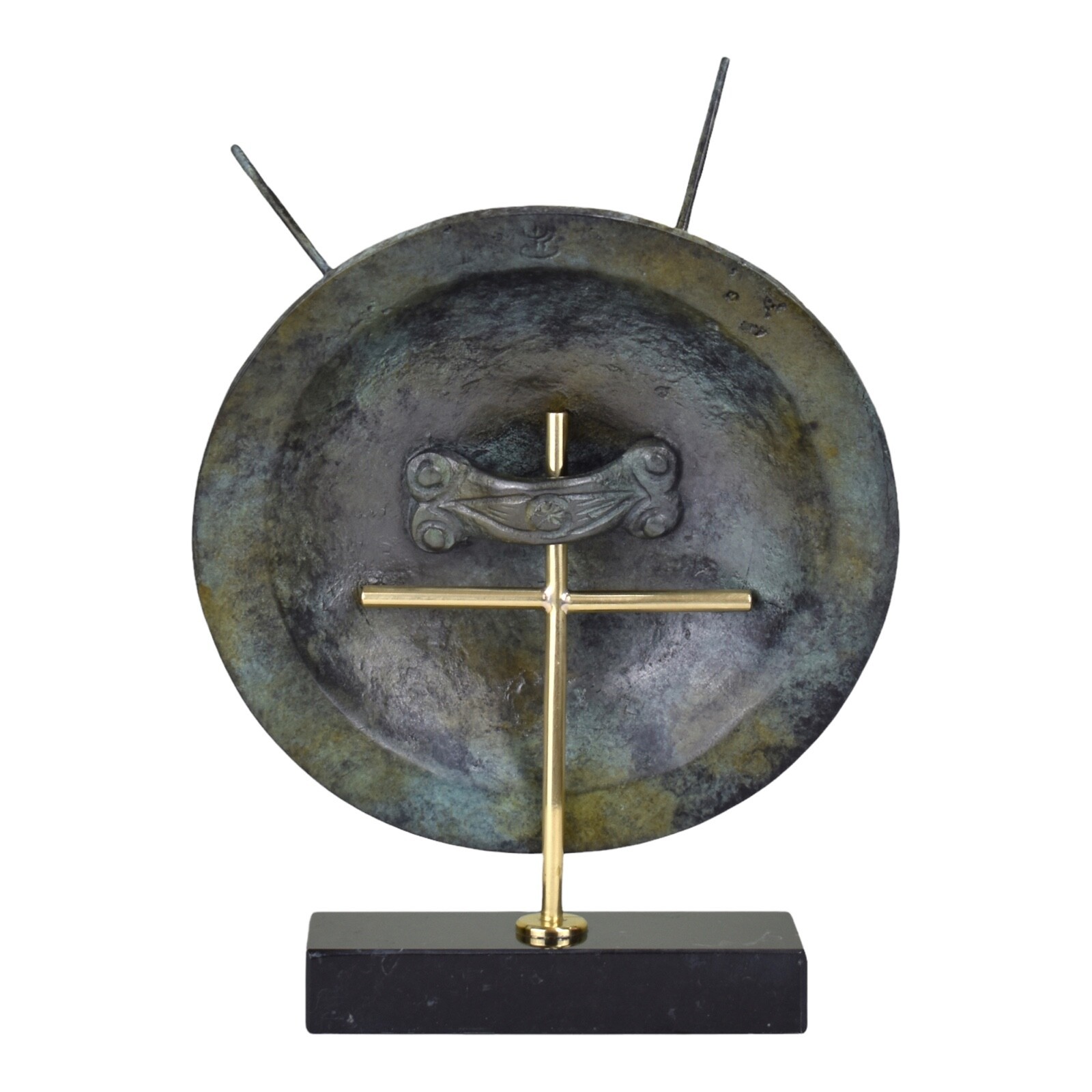 Bouclier Leonidas avec symbole spartiate Lambda et fleches sculpture d'art en metal bronze veritable fait main en Grece