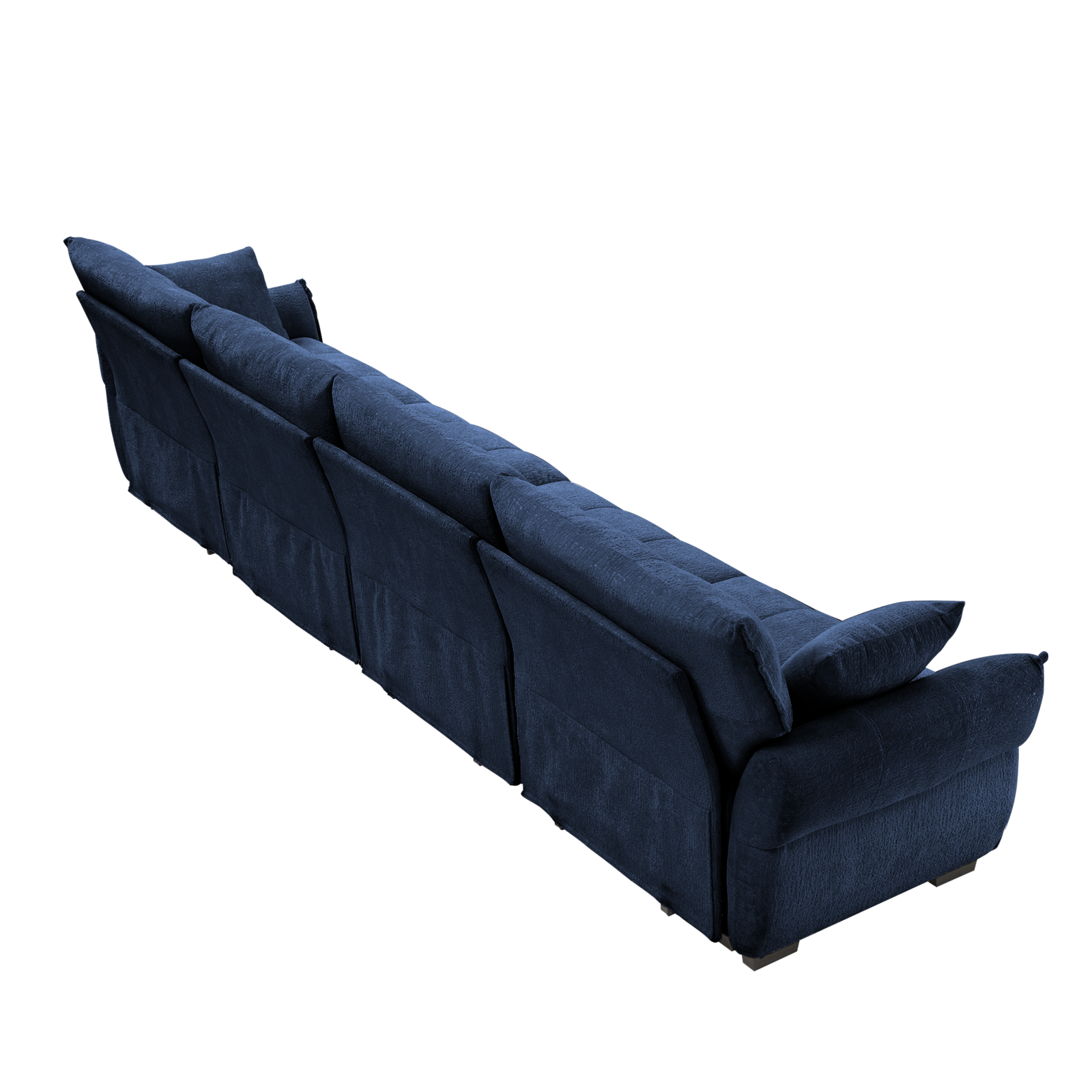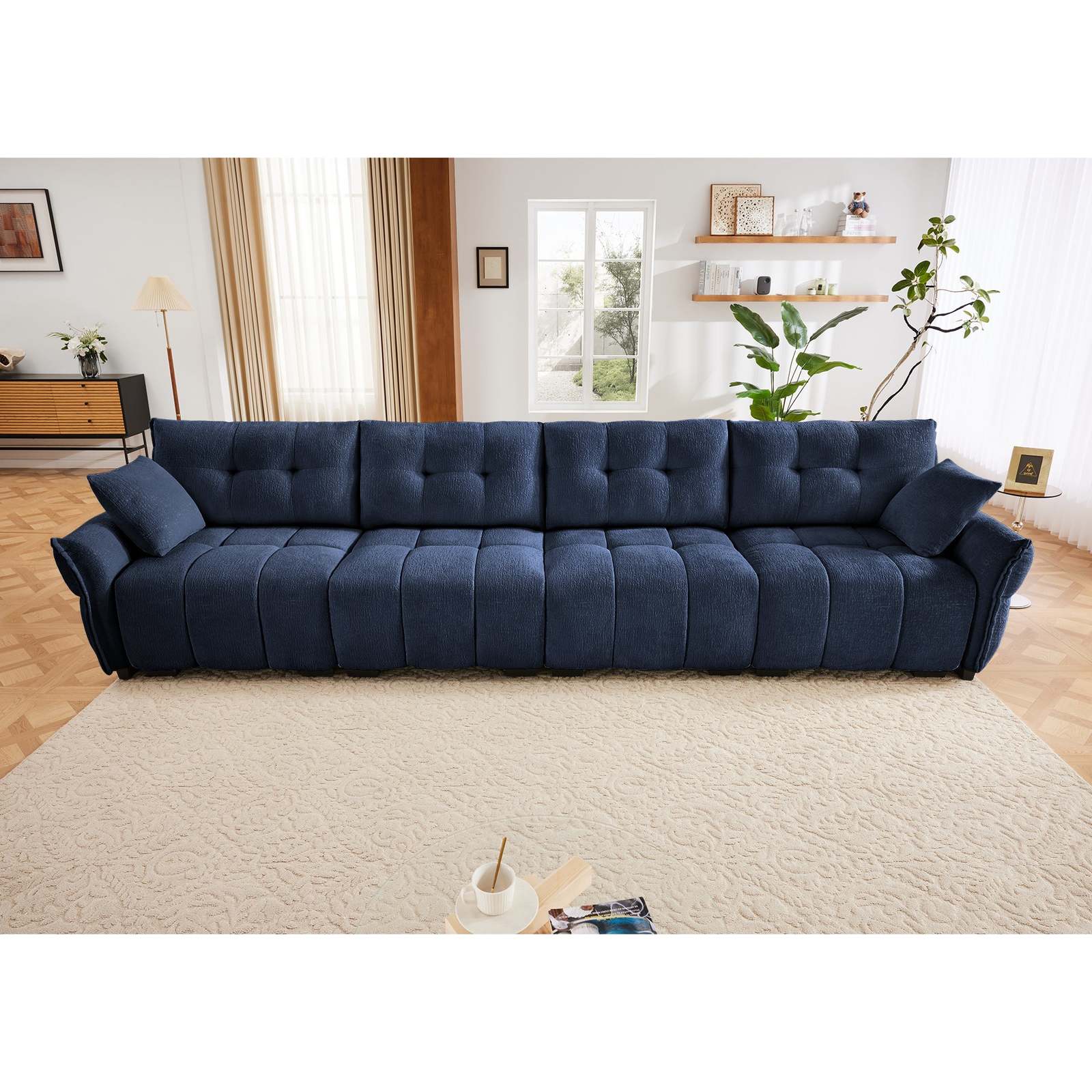 Blue Chenille Sofa: Modern 4-Seater, Wood Frame