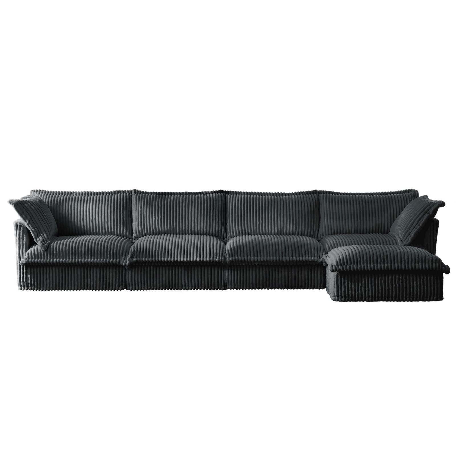 Gray Corduroy L-Shape Sectional Sofa, 4 Seater