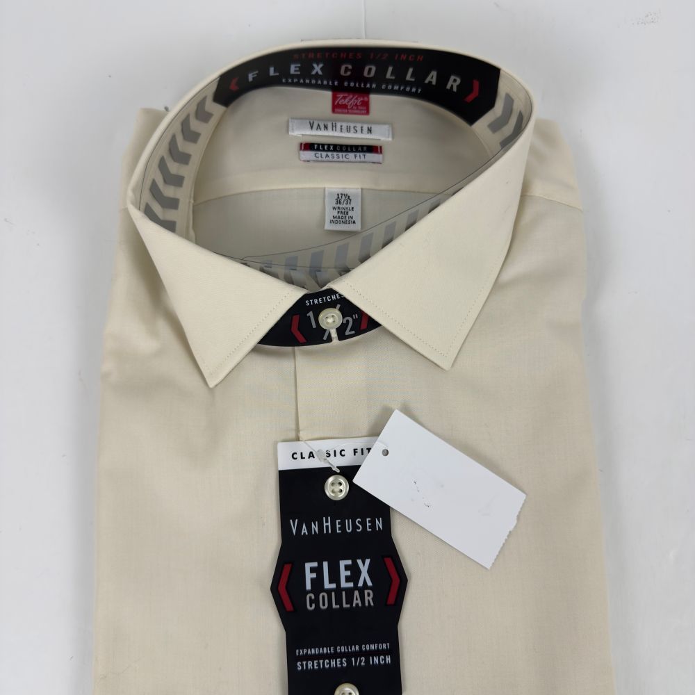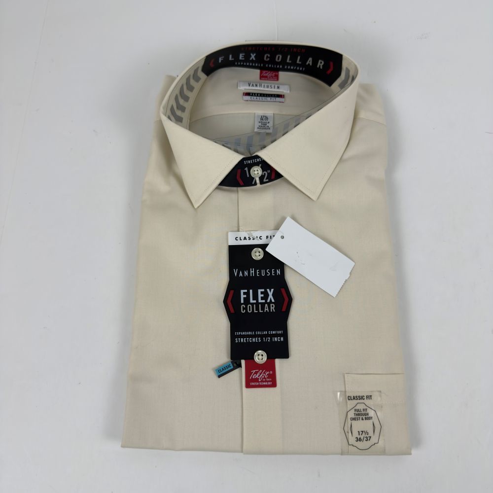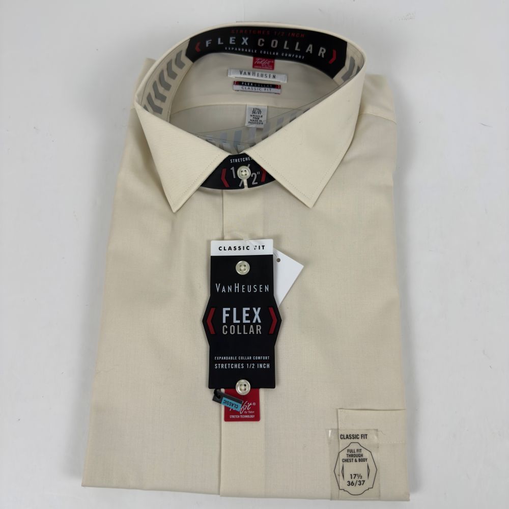 Van Heusen Men's Reg-Fit Flex Collar Stretch Solid Dress Shirt Beige-17.5 36/37