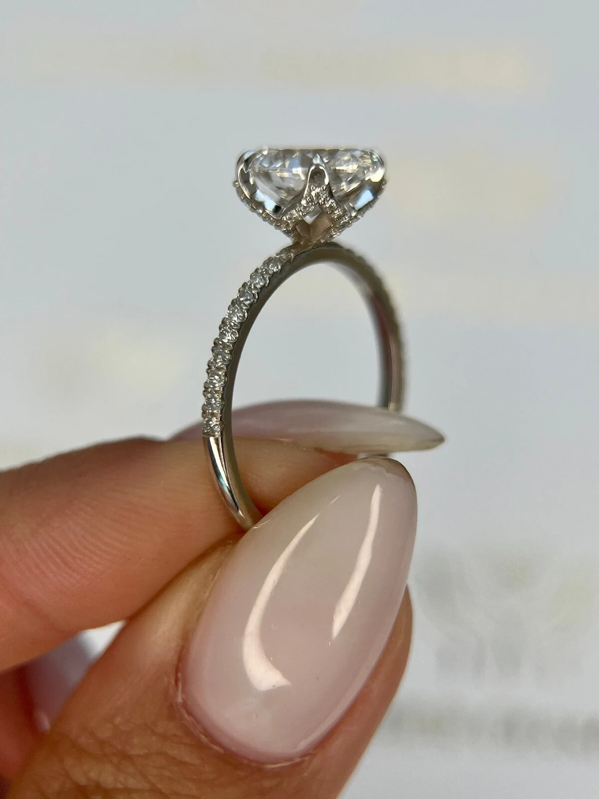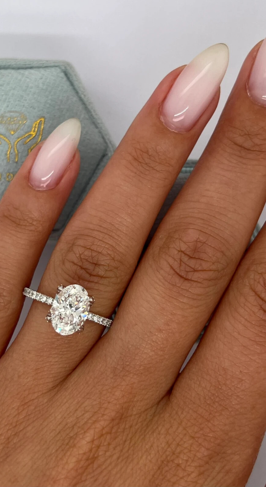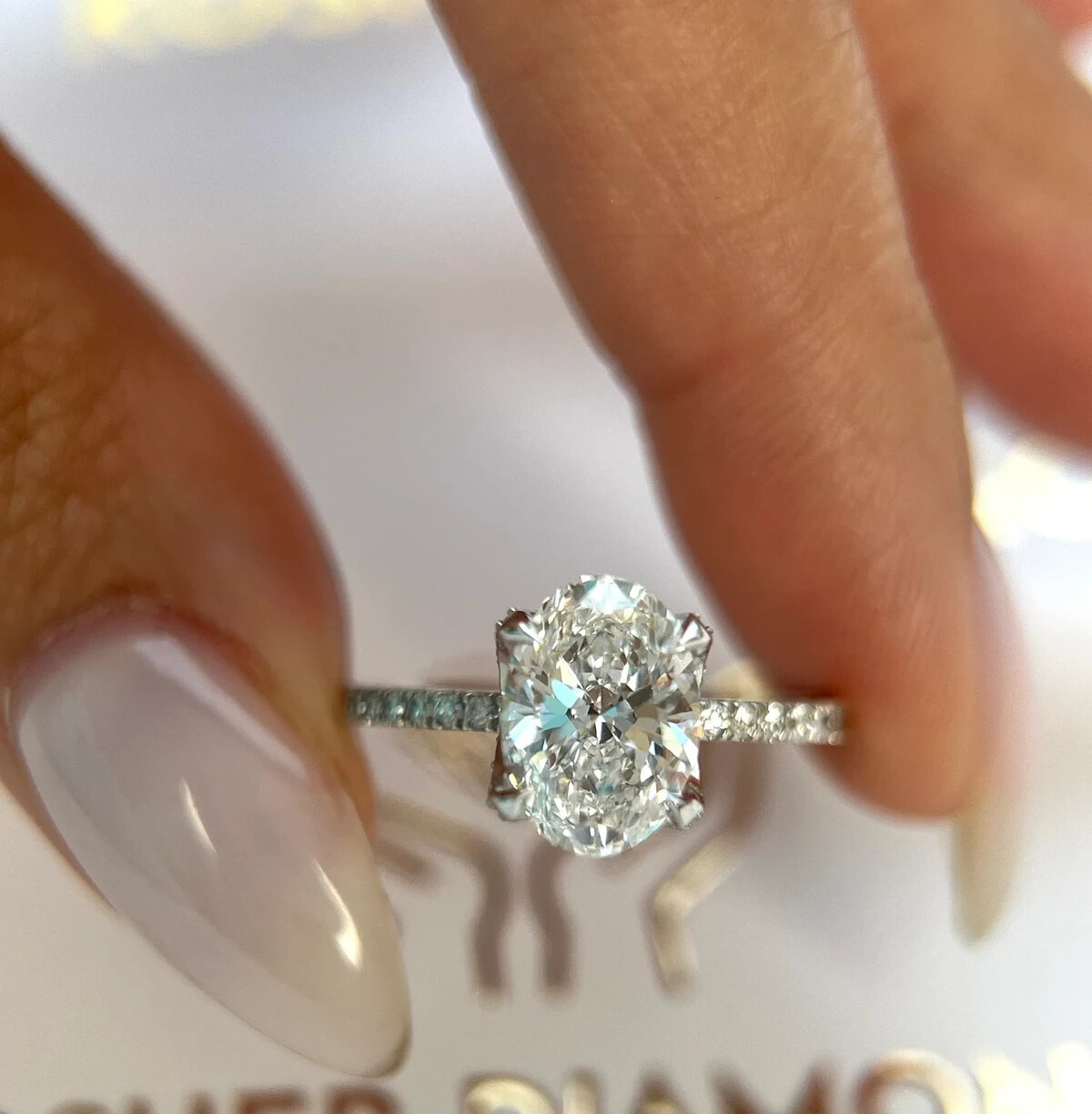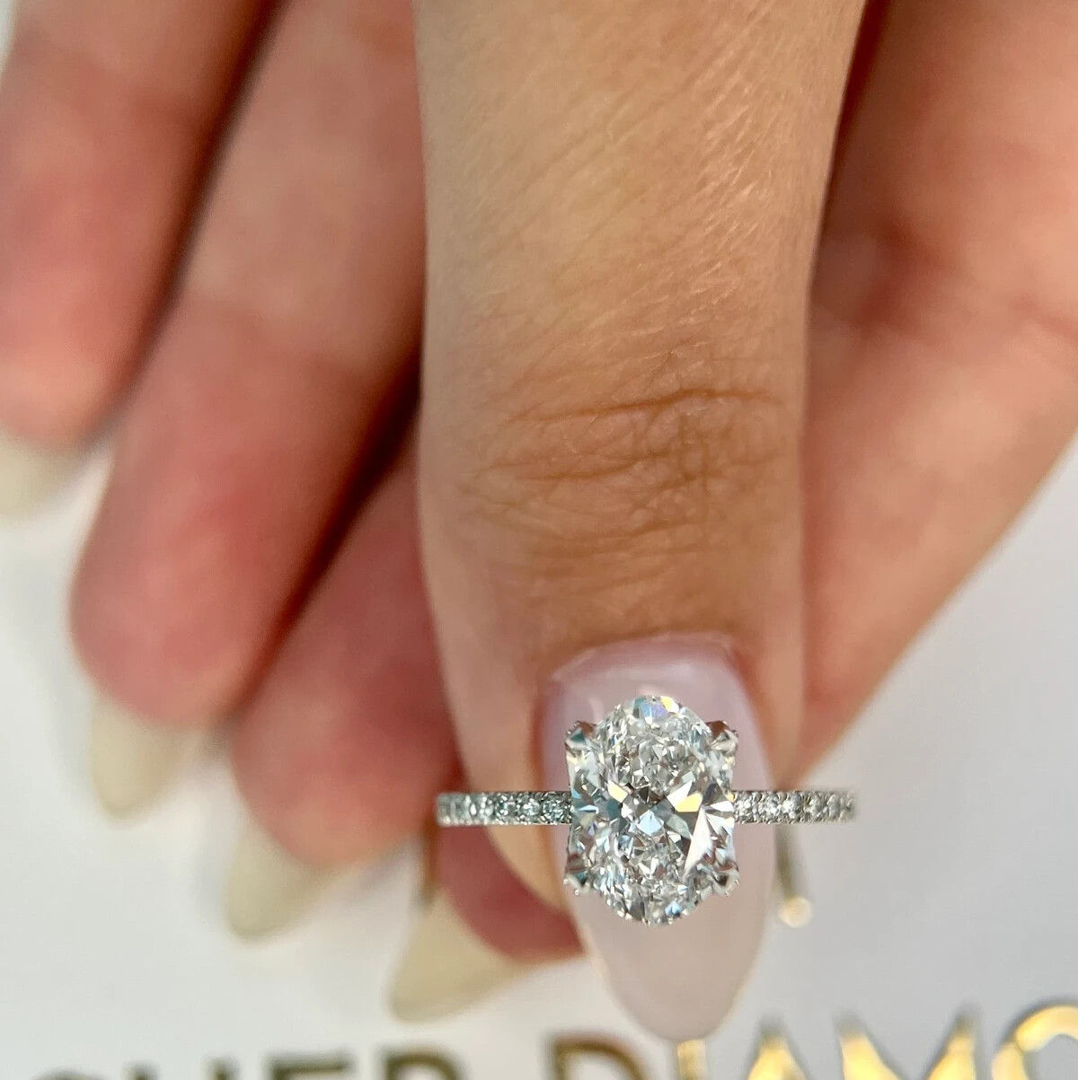 Tulip Style Lab Grown 2.25 Ct E / VVS2 Clarity IGI Certified Oval Diamond Ring