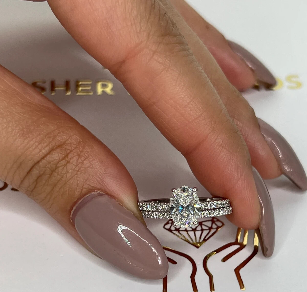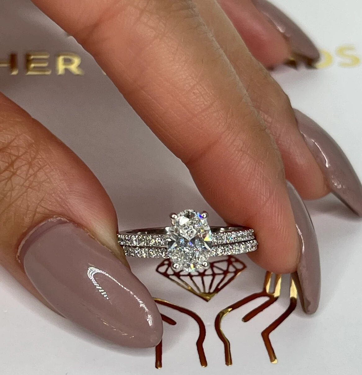 Lab Grown 2.00 Carat D Color VVS1 Oval Diamond IGI CERTIFIED Hidden Halo Ring