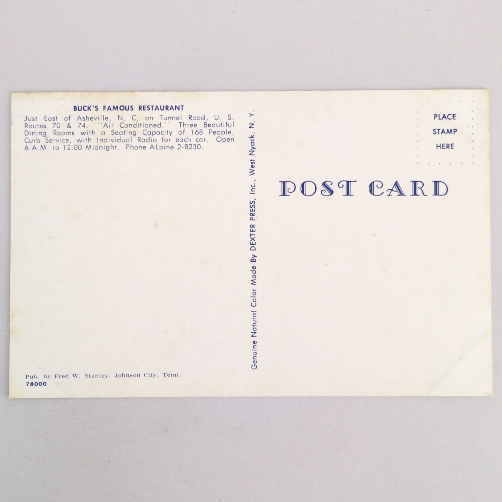 Vintage Postcard 1950s Buck's Famous Restaurant Asheville North Carolina Unused