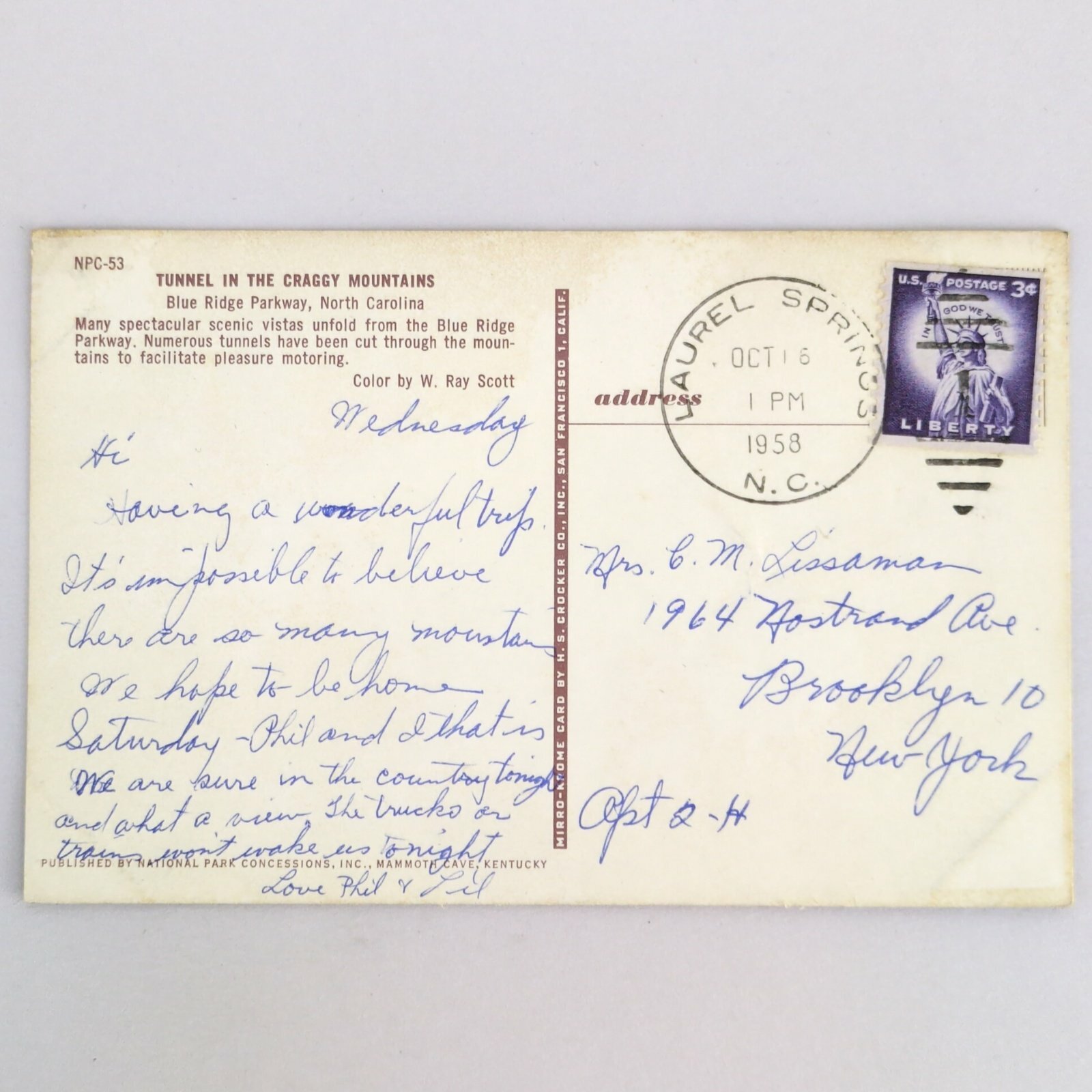 Vintage Postcard 1958 Tunnel in the Craggy Mountains Blue Ridge Parkway NC