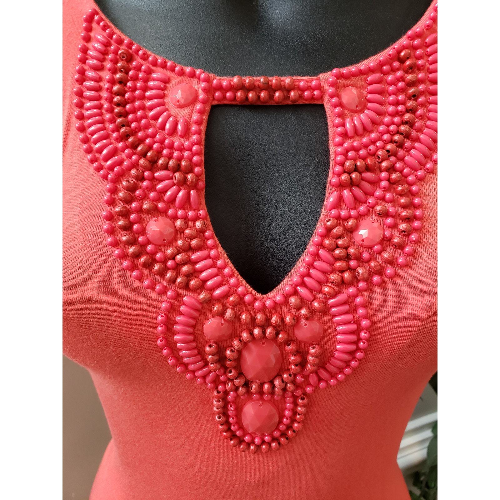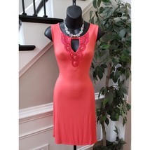 Dana Buchman Dress Women Small Coral Pink Sleeveless Keyhole Beaded Neckline