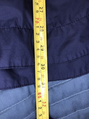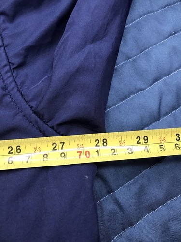 Great used and clean condition. 28? pit to pit. 31? shoulder to bottom. 100% polyester. Pull over is navy blue.