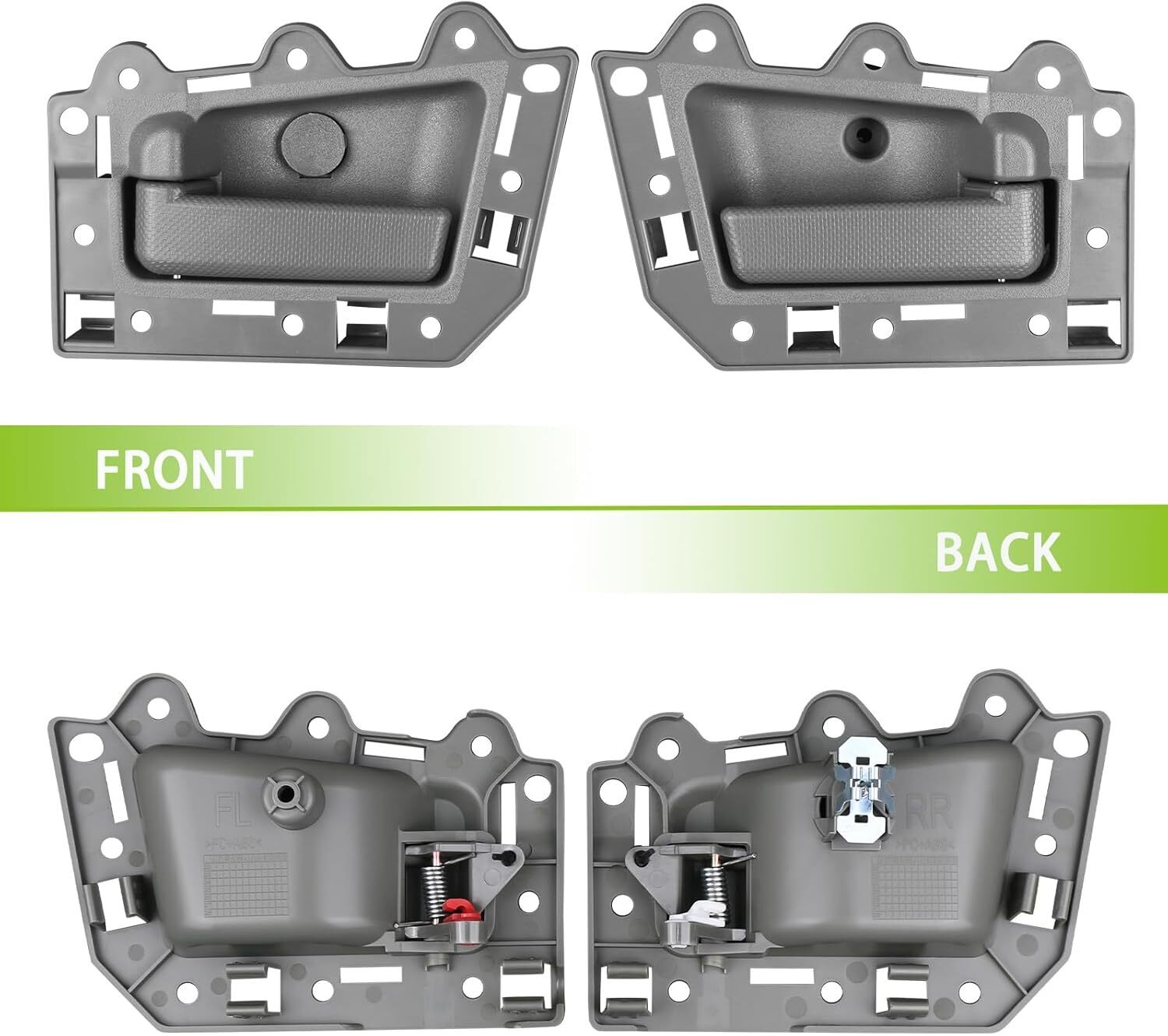REPLACEMENT PART NUMBER:82139, 1JV461J3AA, 82134, 1JV471J3AA,82143,5HR411J3AK, 82144, 5HR421J3AK COMPATIBLE WITH:This Inside door handle kit fit for Jeep Grand Cherokee 2005 2006 2007 2008 2009 2010 05 06 07 08 09 10. Please refer to the vehicle compatibility above to ensure proper part. FEATURES:The Inner door handle with upgraded plastic process,high hardness,oxidation resistance,heat resistance, corrosion resistance,replacement of new parts,Solve your safety problems while making your car look new and more beautiful SERVICE LIFE EASY INSTALLATION:This pull handles are not the real original parts,but it uses advanced technology and good materials in line with oem standards,more effective extension of service life,directly replace the old handle, easy to install can save you time and money BUY WITH CONFIDENCE:If you have any questions or concerns about the Interior door handle set of 4pcs,please tell by email and we will provide you with satisfactory service support