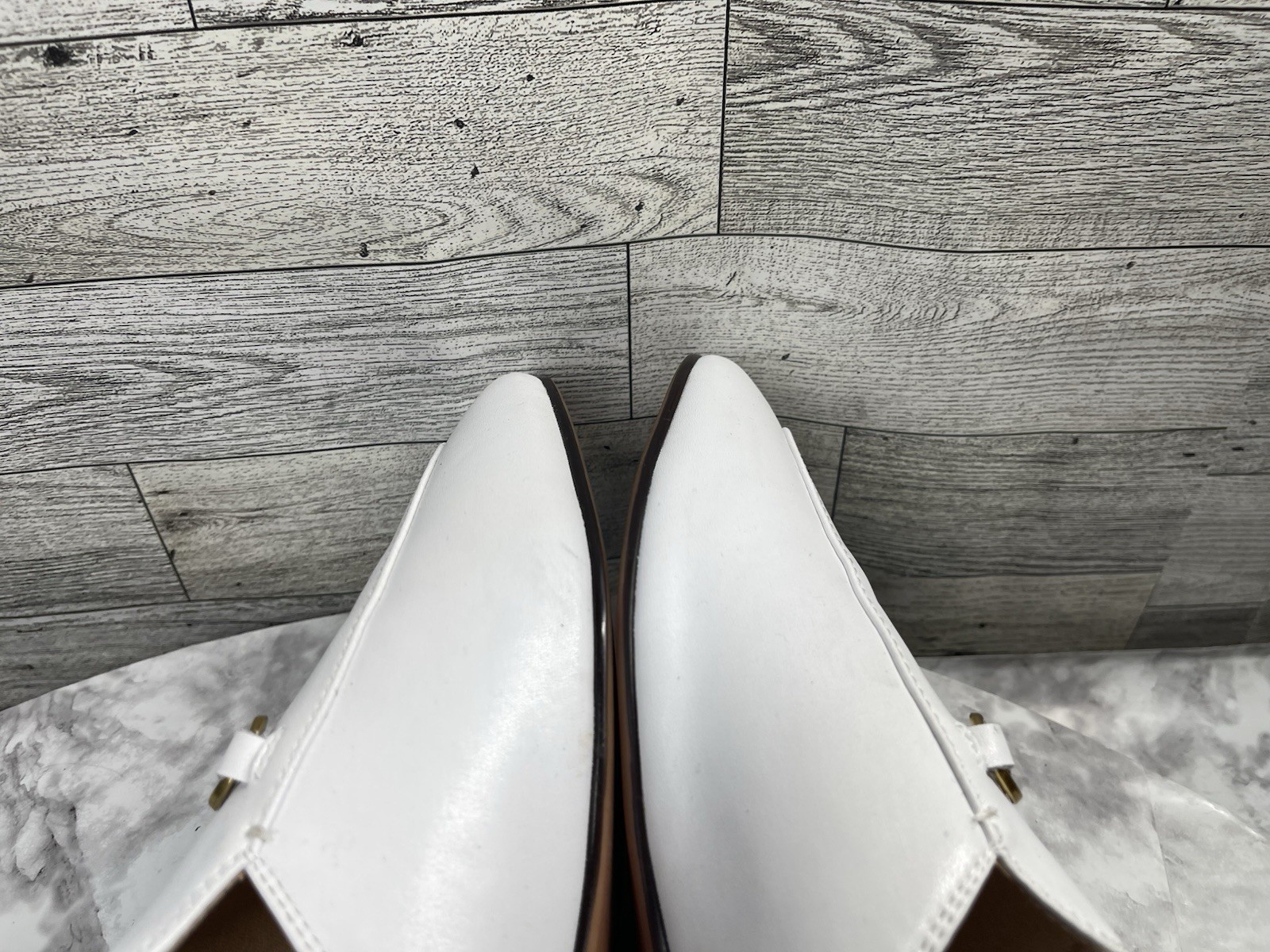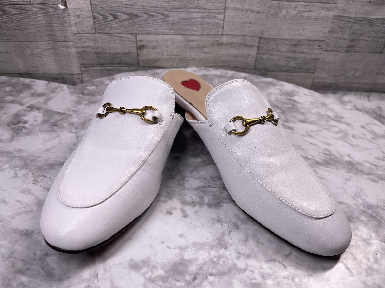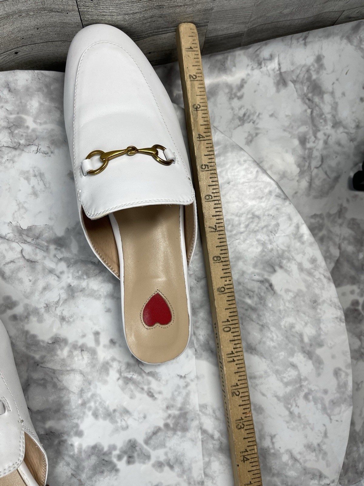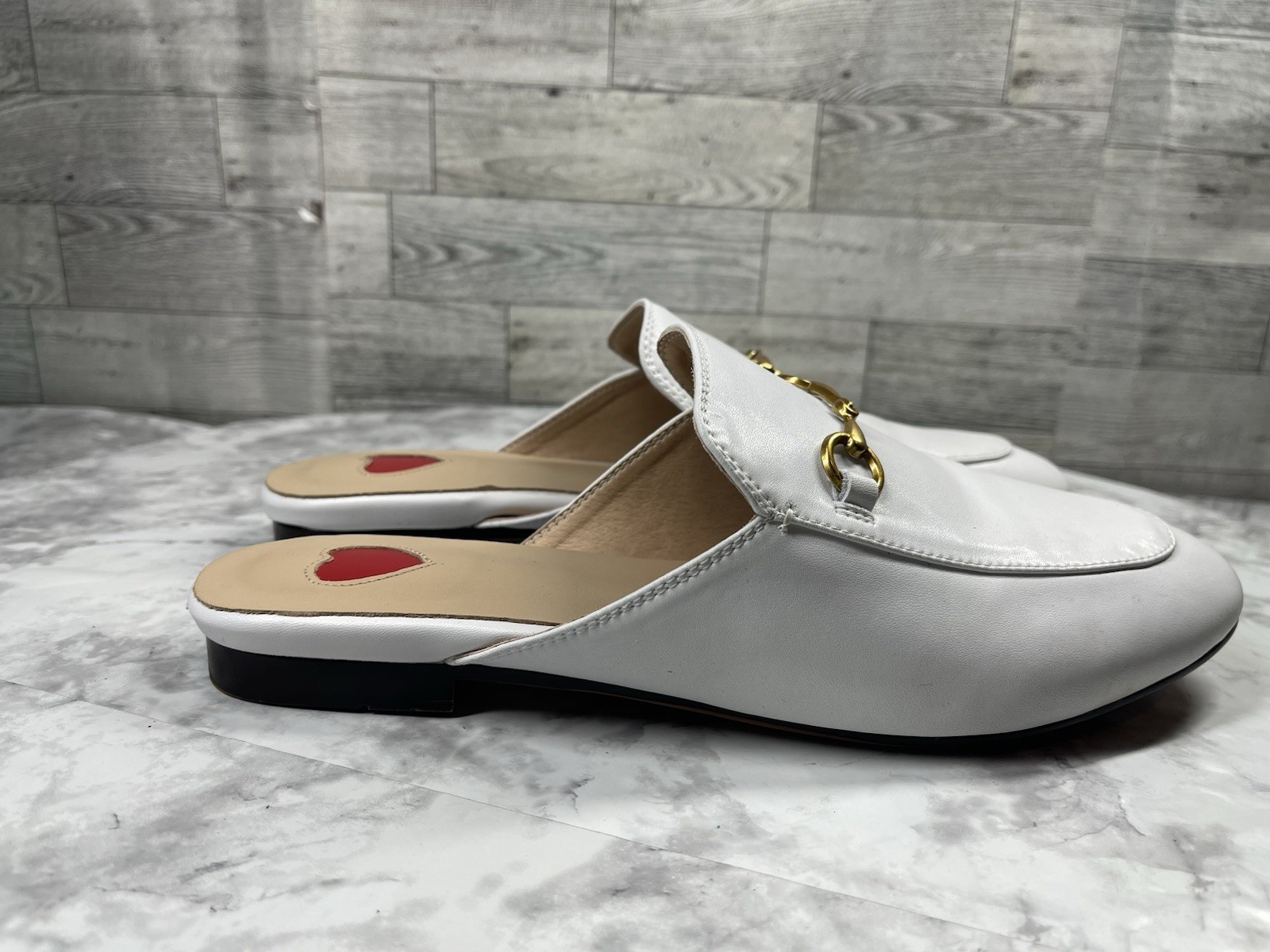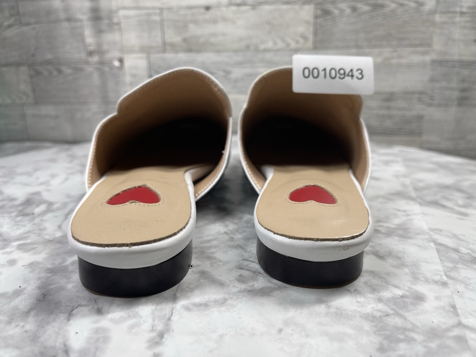 AKQA Mules Women 40/ 9.5M Shoes White Leather Slip On Comfort Flats Apron Toe