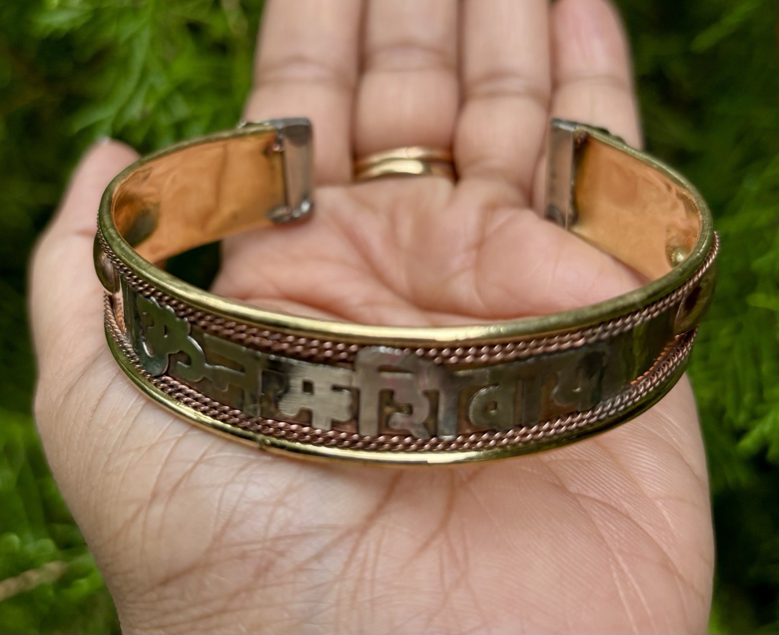 1Pc Pure Ashtadhatu Copper Brass Silver Healing Bangle Cuff Bracelet Namah Shiva