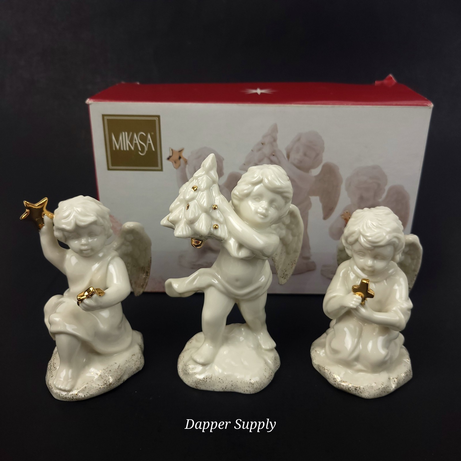 Mikasa Cherub Set Of 3 Angels Figurine Holiday Elegance FK001 Fine Porcelain