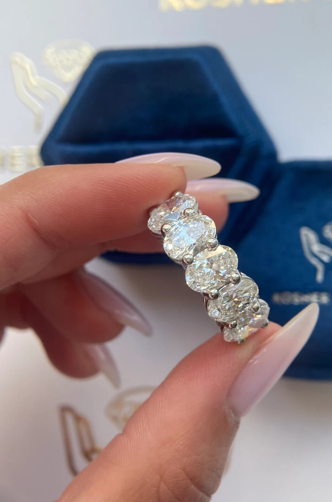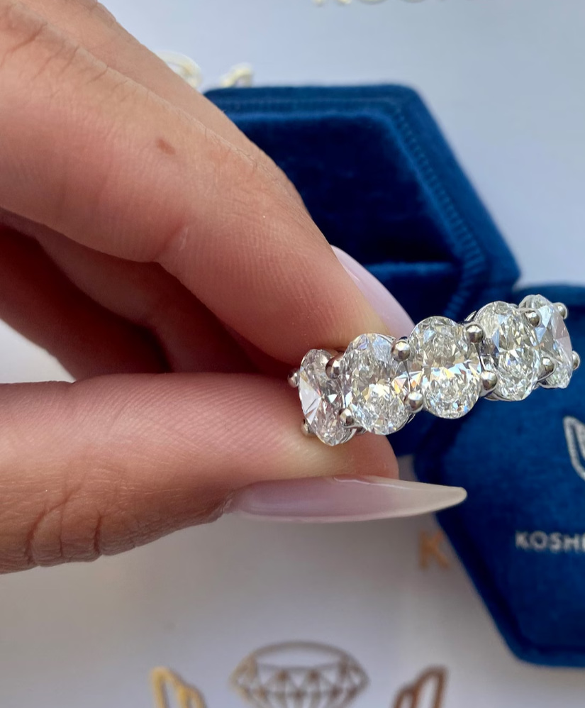 Huge Lab Grown 5.00 Ct D Color VVS2 Clarity IGI Certified Five Stone Oval Band