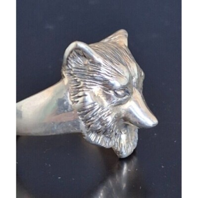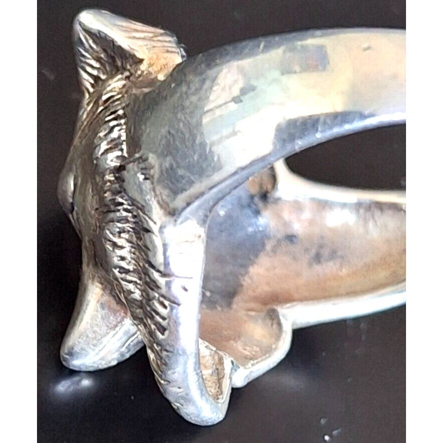 MEN'S NATIVE AMERICAN? 925 STERLING SILVER 3D WOLF RING SIZE 8.75 SKY