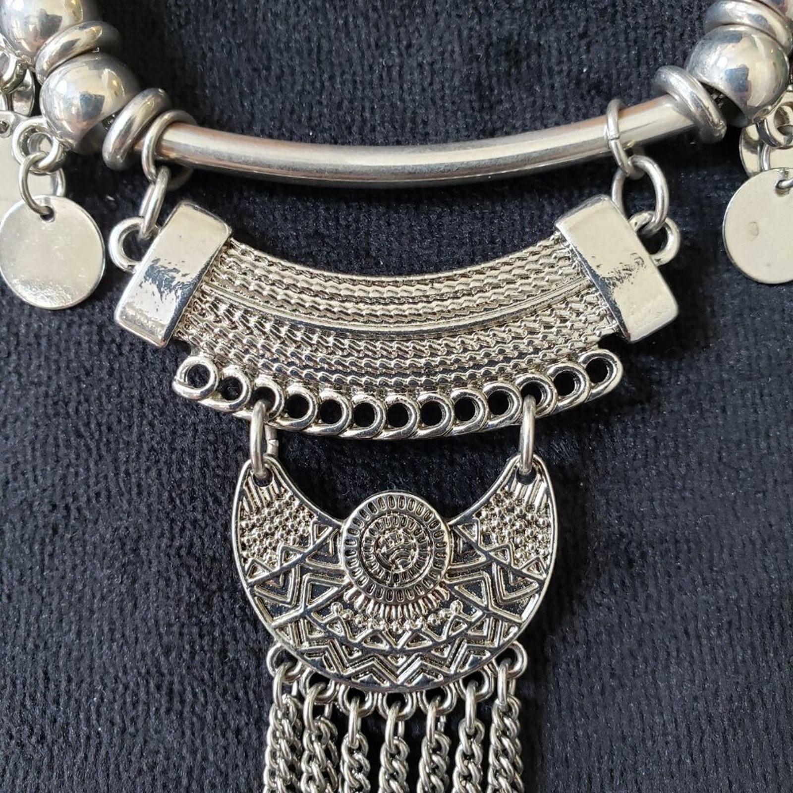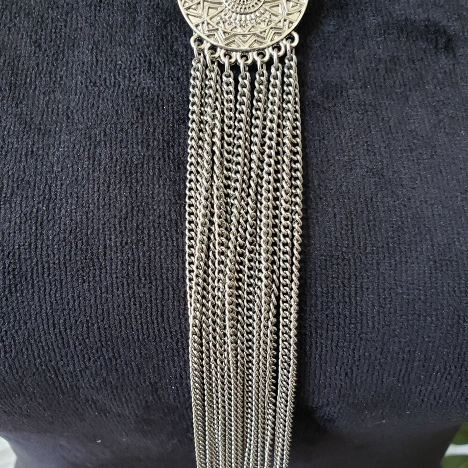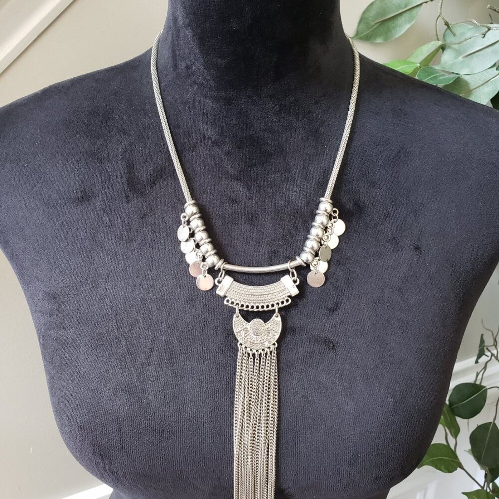 Aldo Women Fashion Silver Tone Fringe Tassel Pendant Necklace with Lobster Clasp.