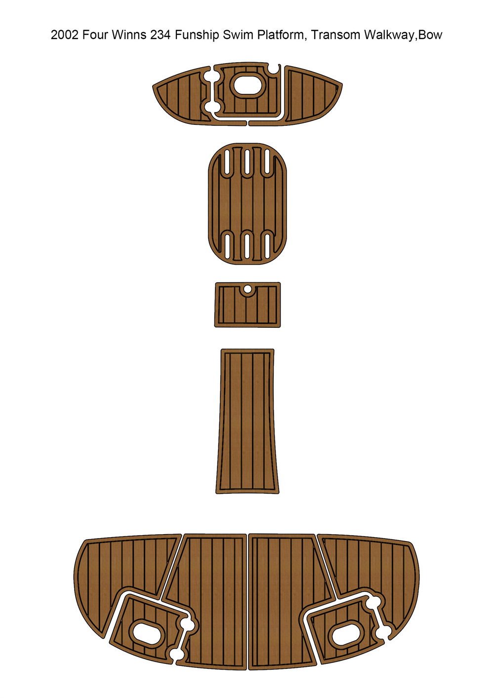 This listing is for one set of 2002 Four Winns 234 Funship Swim Platform Bow Pad Boat EVA Foam Teak Floor Mat as shown in the listing drawing.We will only use the listing decking drawing for your order fabrication. The listing decking photos are for reference only.