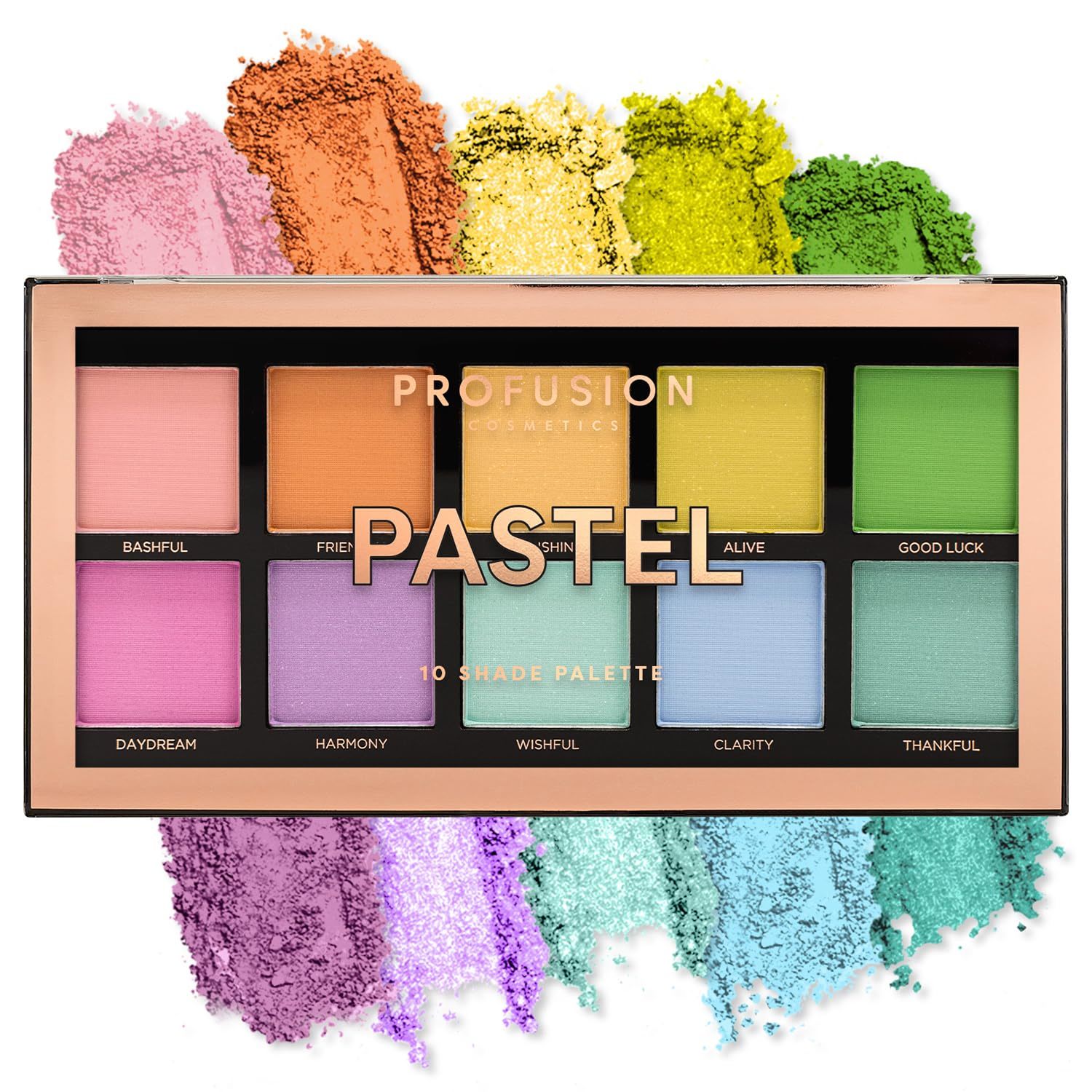 Profusion Cosmetics Pastel 10 Shade Eyeshadow Palette, Richly Pigmented and Vega