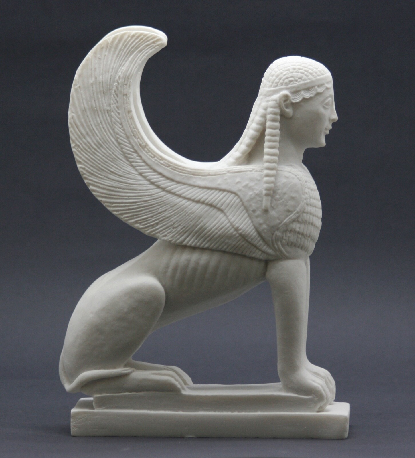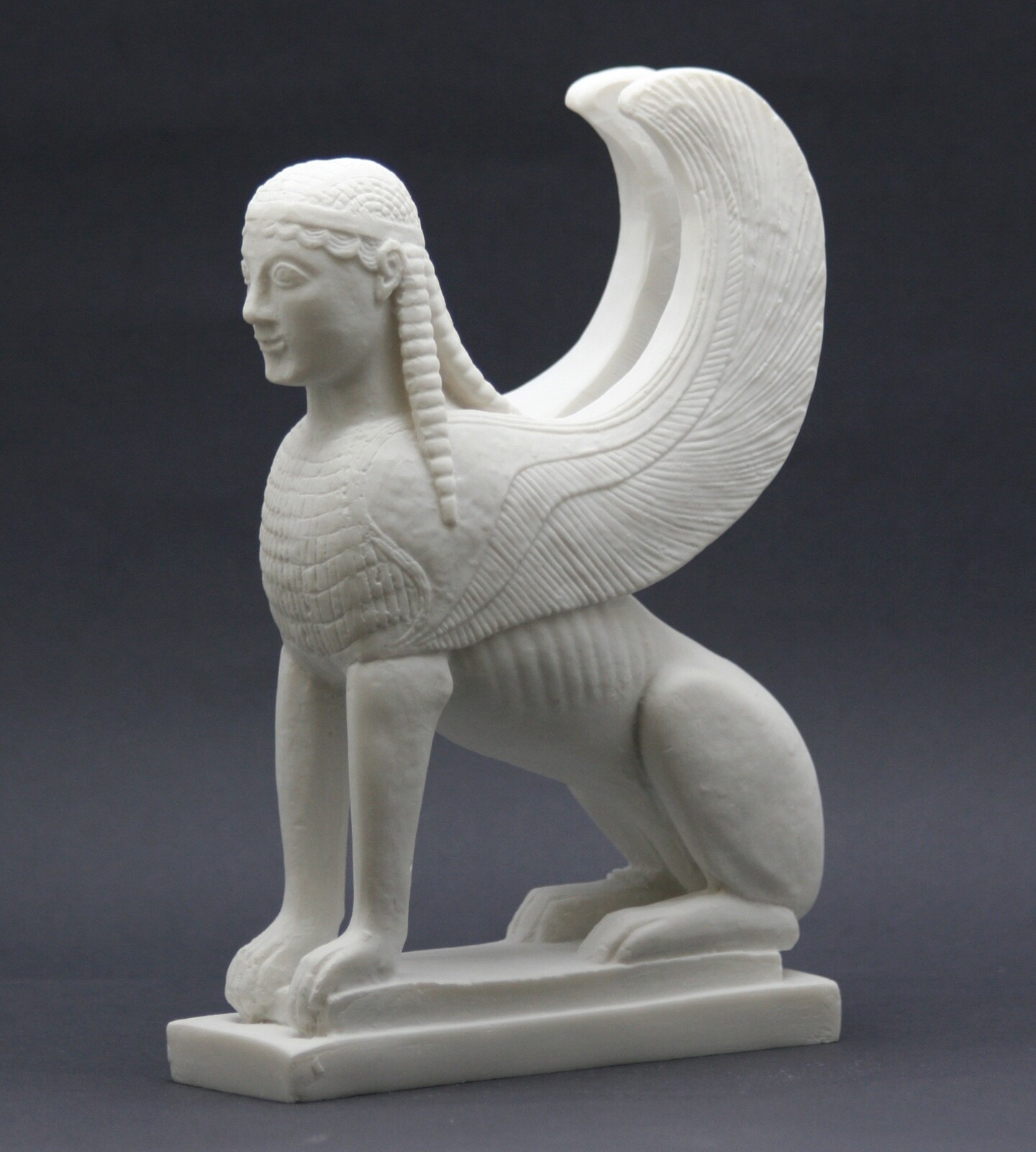 Nuestra estatua es una copia (en menor escala) de la famosa escultura, conocida como «La Esfinge de Naxos».